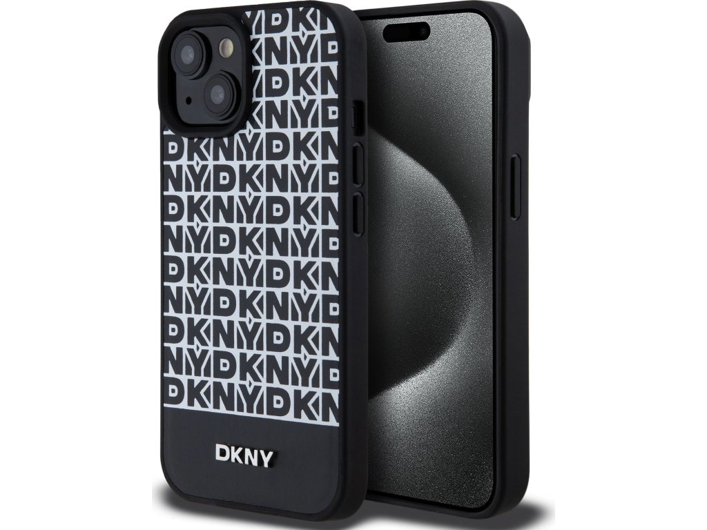 DKNY PU Leather Repeat Pattern Bottom Stripe MagSafe Zadní Kryt pro iPhone 15 Black