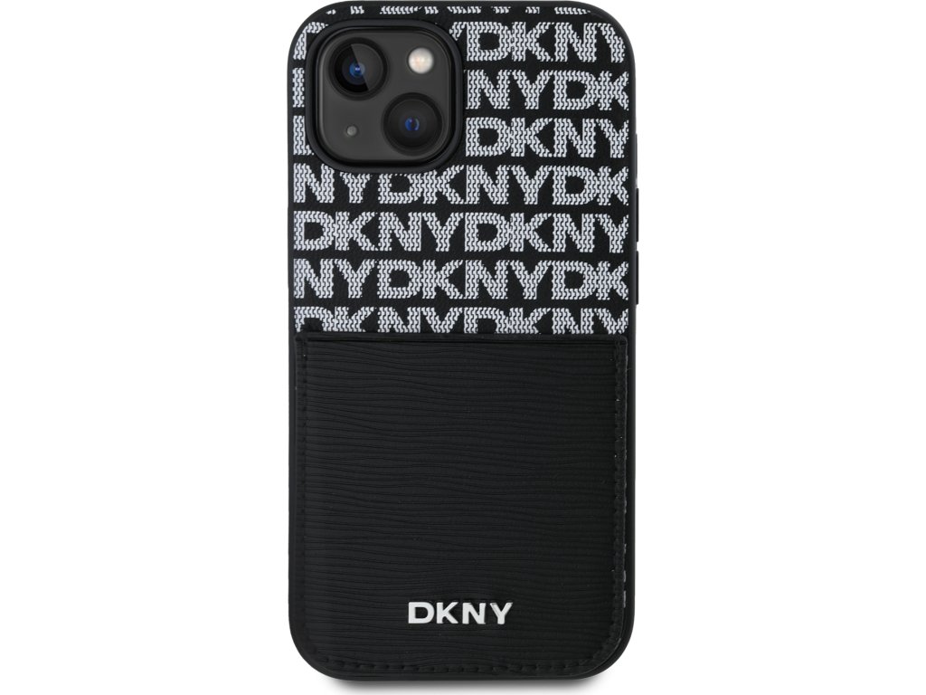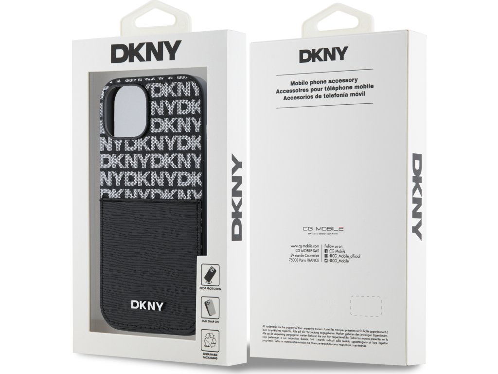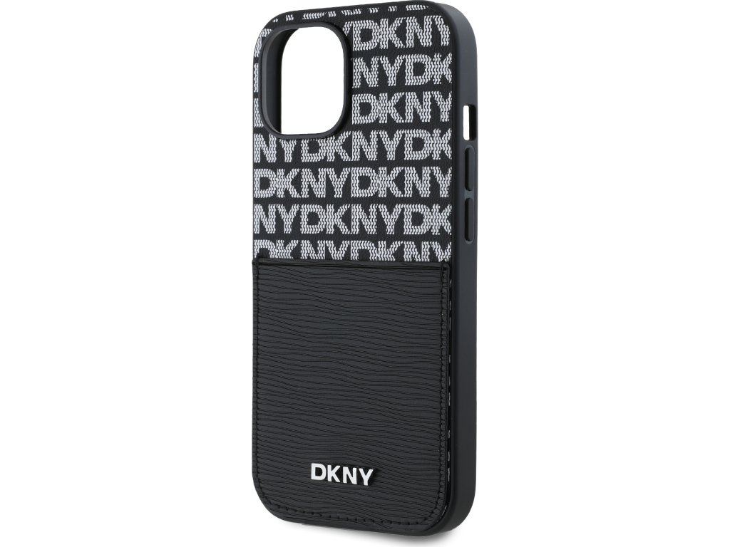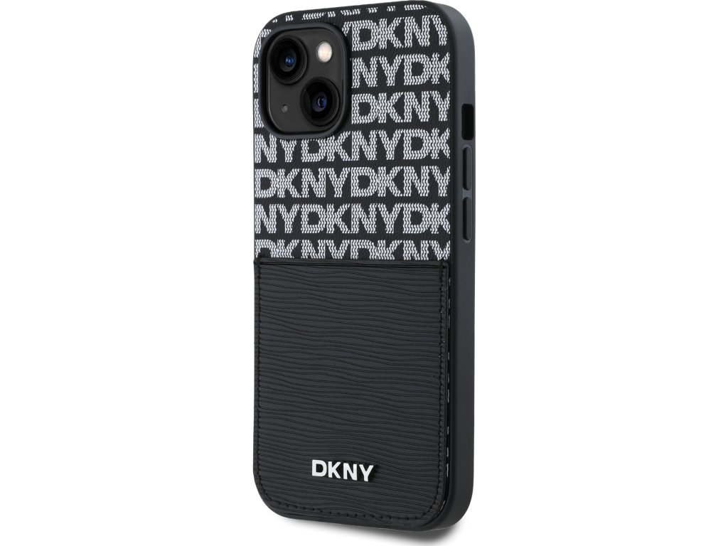 DKNY PU Leather Repeat Pattern Card Pocket Zadný Kryt pre iPhone 15 Black
