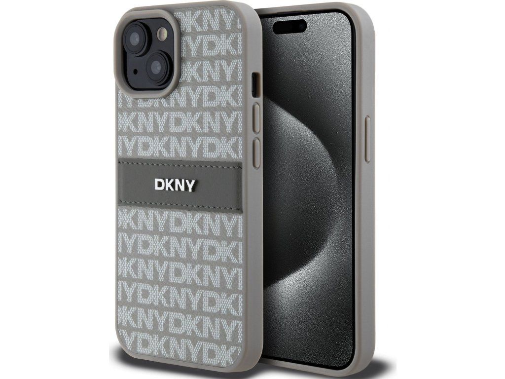 DKNY PU Leather Repeat Pattern Tonal Stripe Zadní Kryt pro iPhone 15 Beige