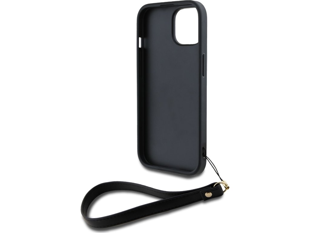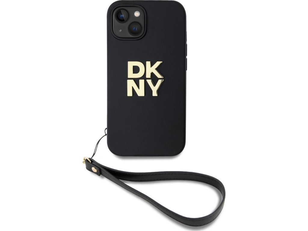 DKNY PU Leather Stack Logo Wrist Strap Zadní Kryt pro iPhone 15 Black
