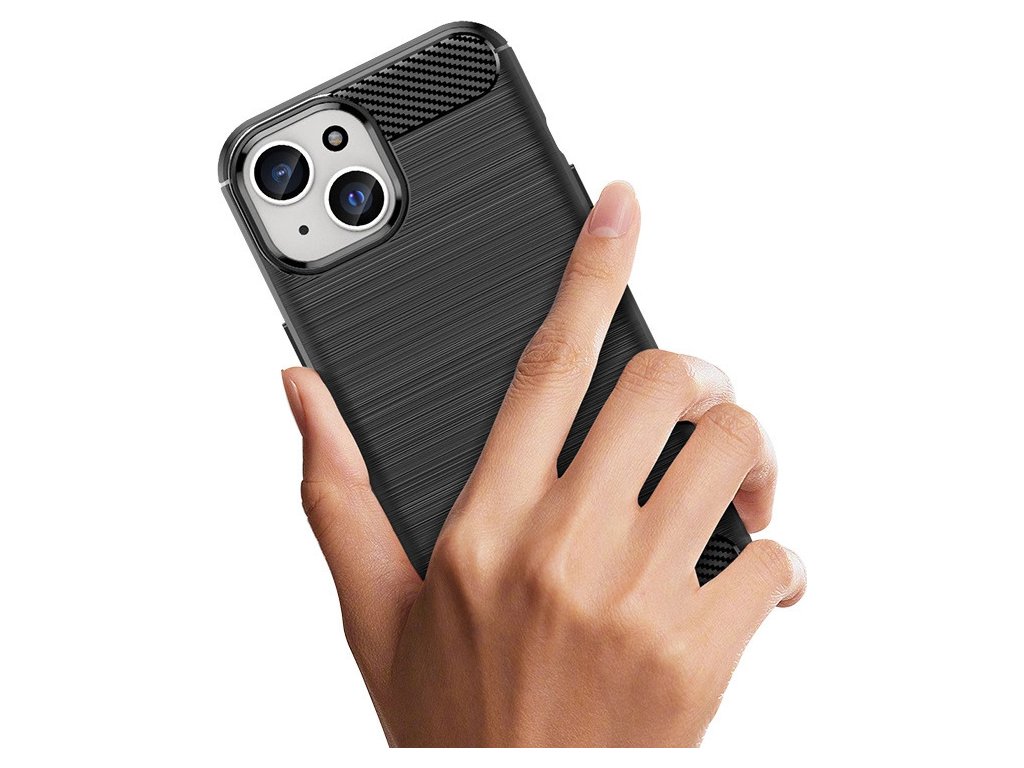 Flexibilní kryt s karbonovým vzorem pro iPhone 15 - černý
