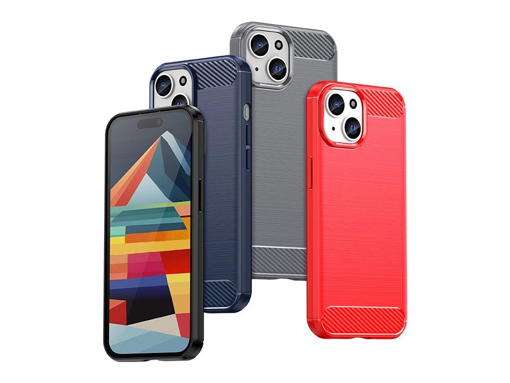 Flexibilní kryt s karbonovým vzorem pro iPhone 15 - modrý