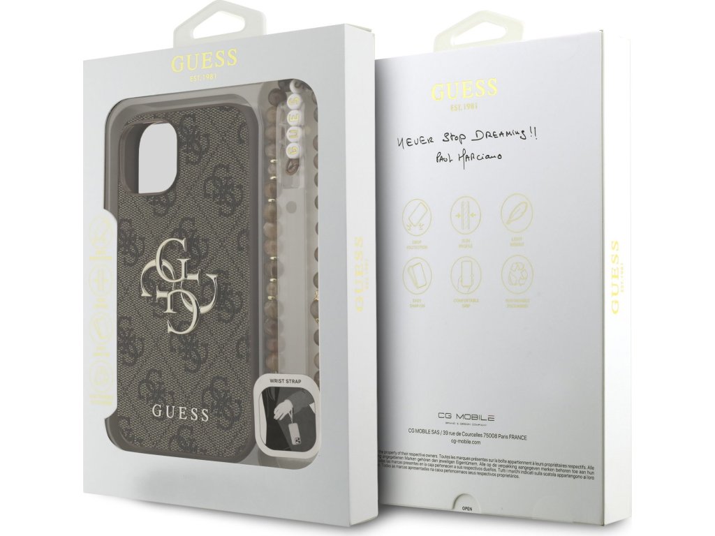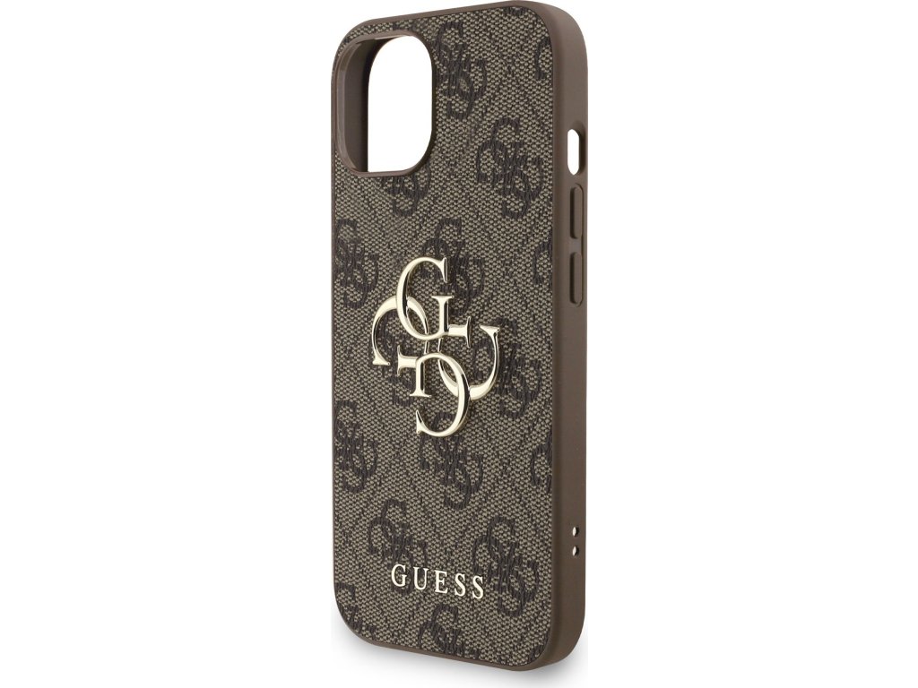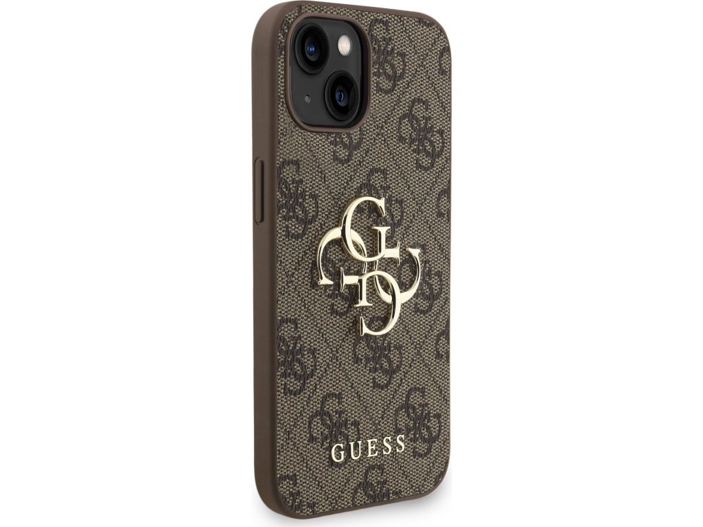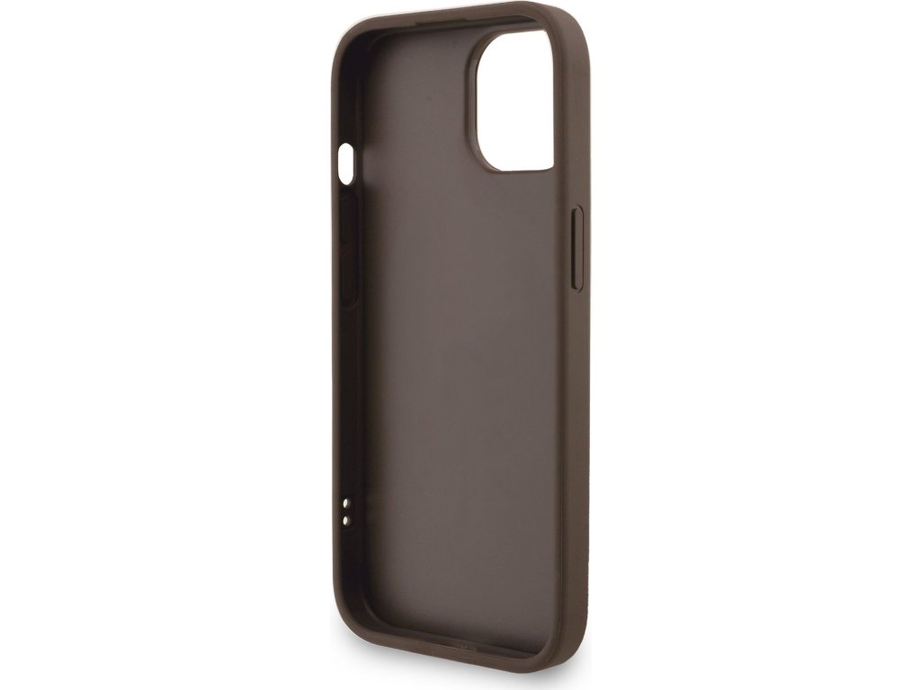 Guess PU 4G Metal Logo Strap Zadní Kryt pro iPhone 15 Brown