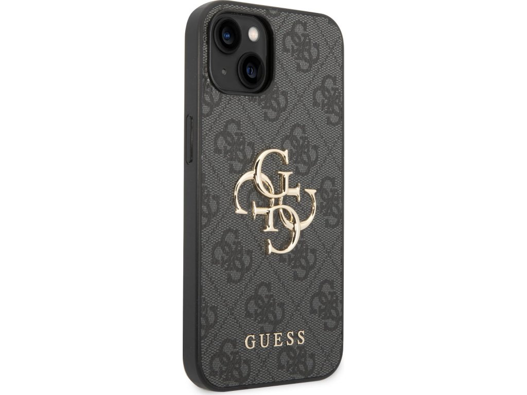 Guess PU 4G Metal Logo Zadní Kryt pro iPhone 15 Grey