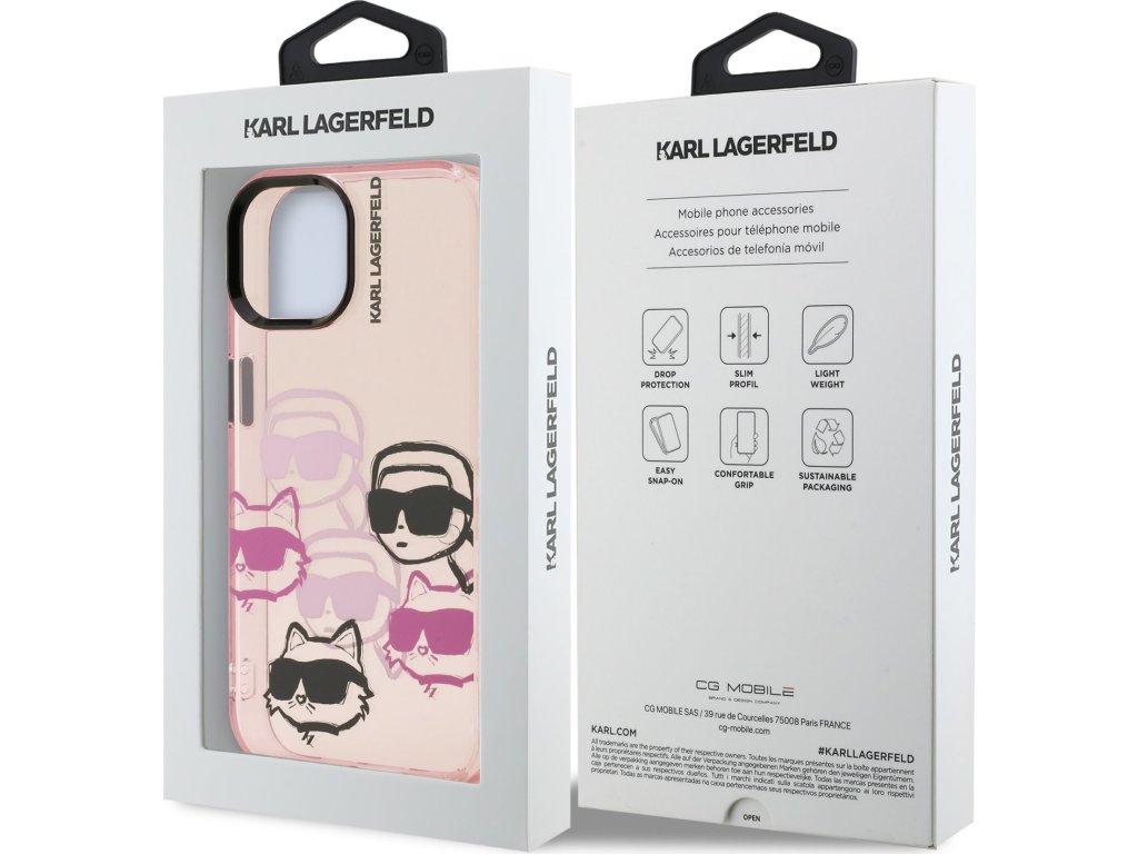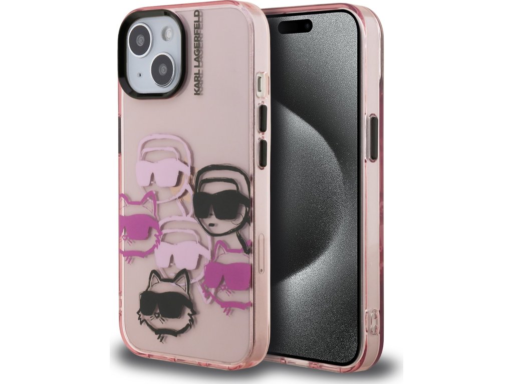 Karl Lagerfeld IML Multi K&CH Heads Zadní Kryt pro iPhone 15 Pink