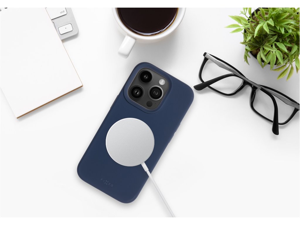 Kožený zadní kryt FIXED MagLeather s podporou MagSafe pro Apple iPhone 15, modrý