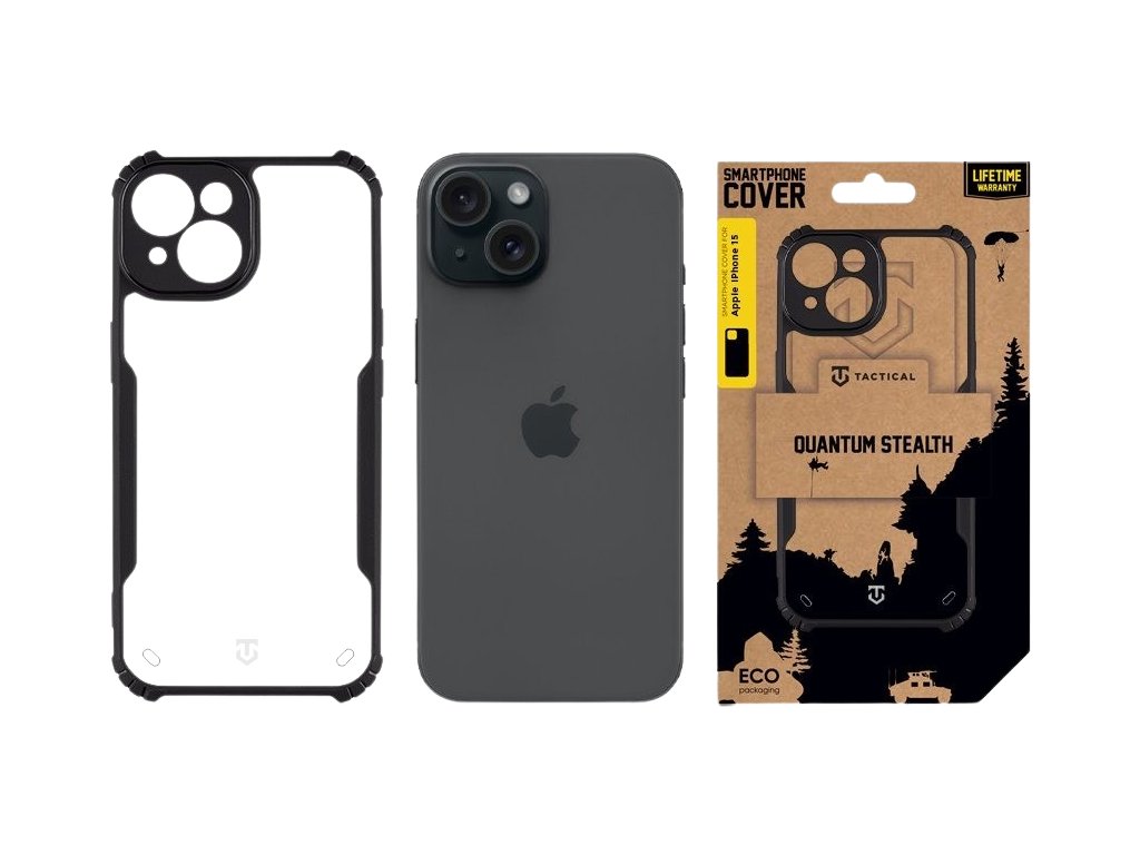 Tactical Quantum Stealth Kryt pro Apple iPhone 15 Clear/Black