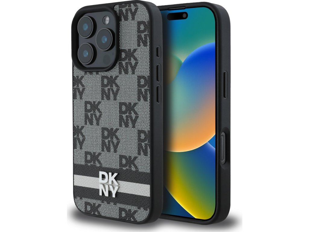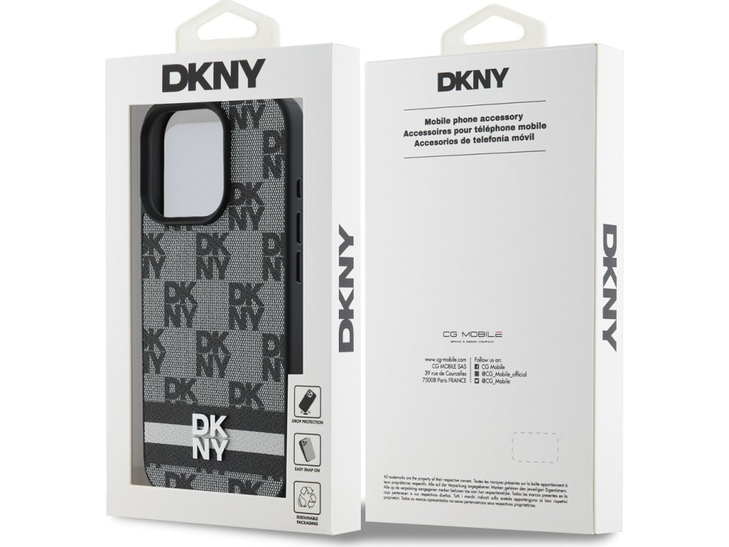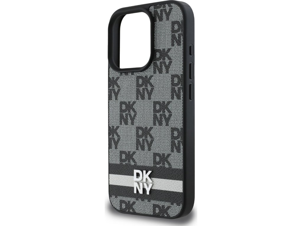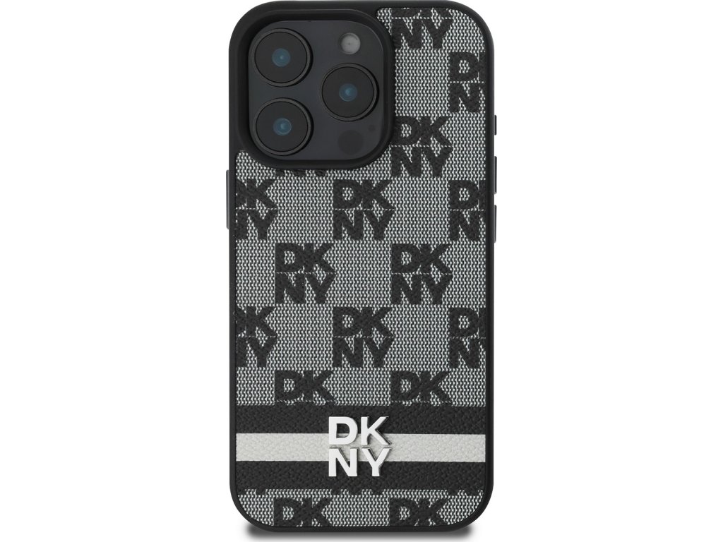 DKNY PU Leather Checkered Pattern and Stripe Zadní Kryt pro iPhone 16 Pro Max Black