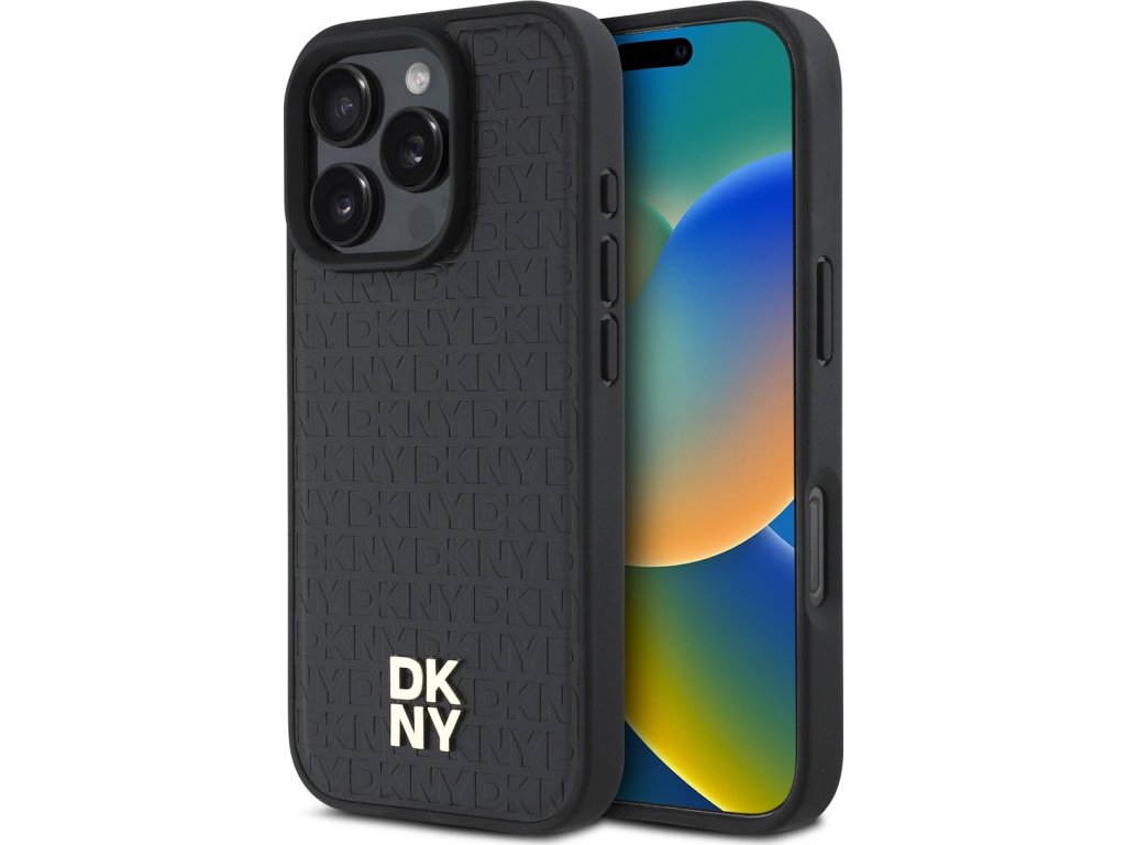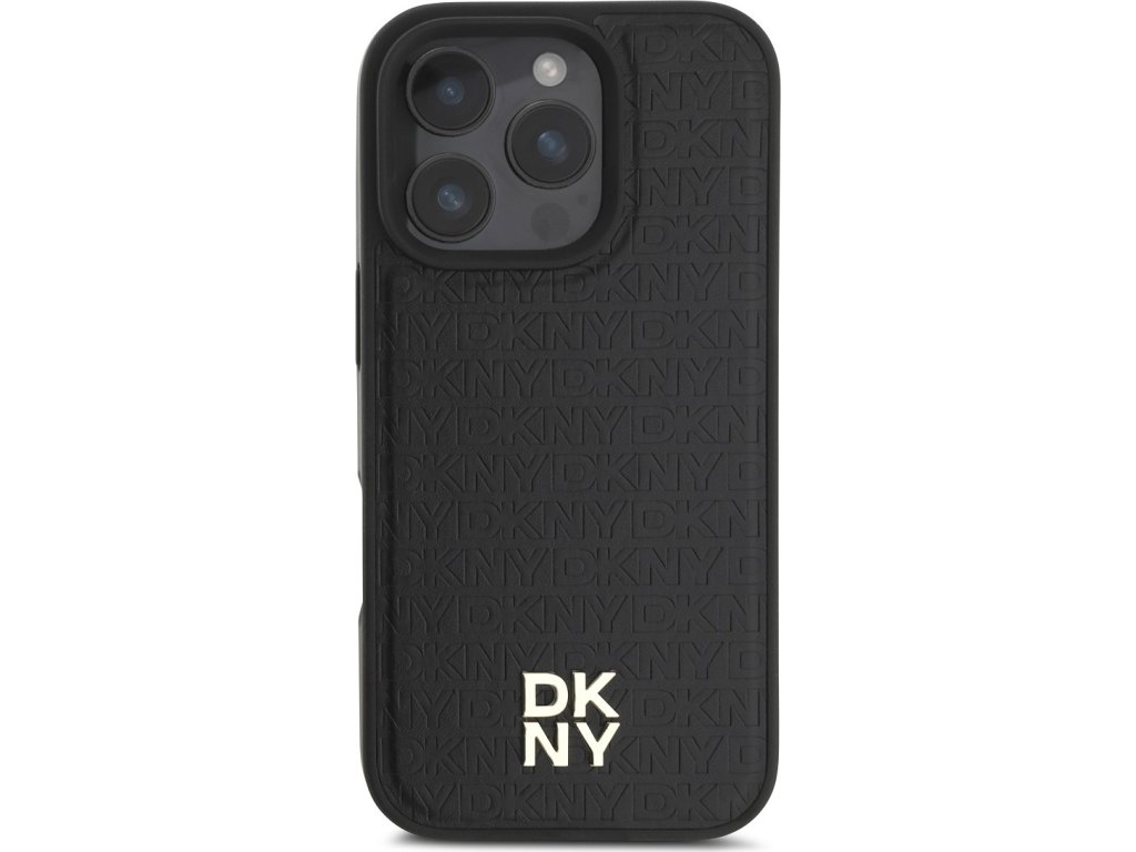 DKNY PU Leather Repeat Pattern Stack Logo MagSafe Zadní Kryt pro iPhone 16 Pro Max Black