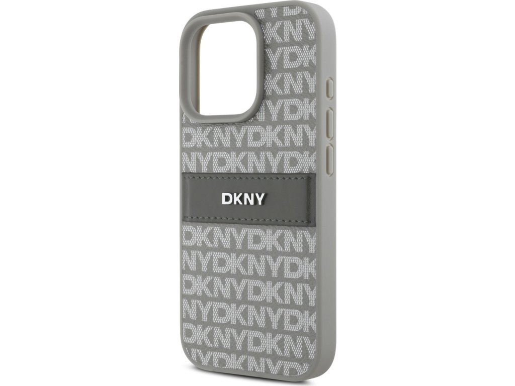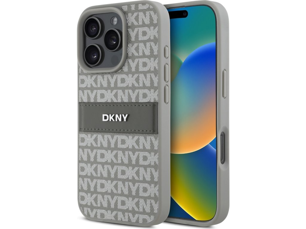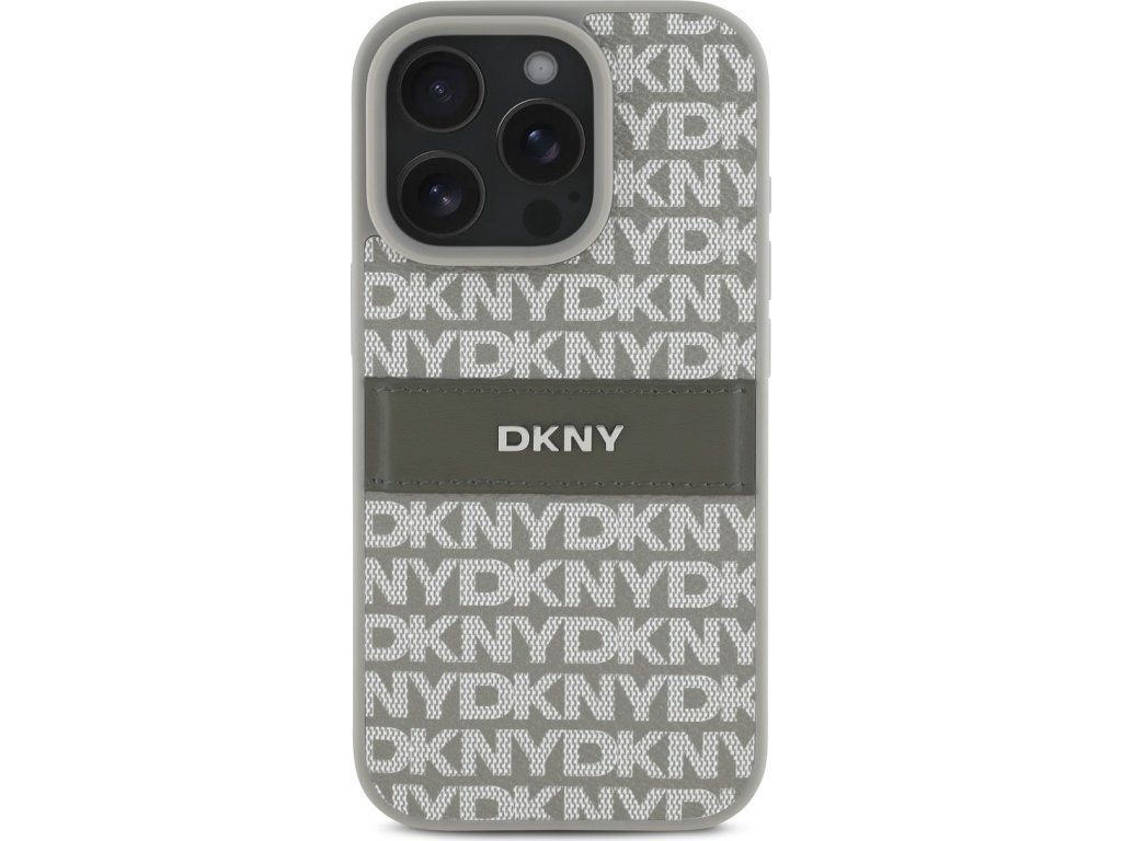 DKNY PU Leather Repeat Pattern Tonal Stripe Zadní Kryt pro iPhone 16 Pro Max Beige