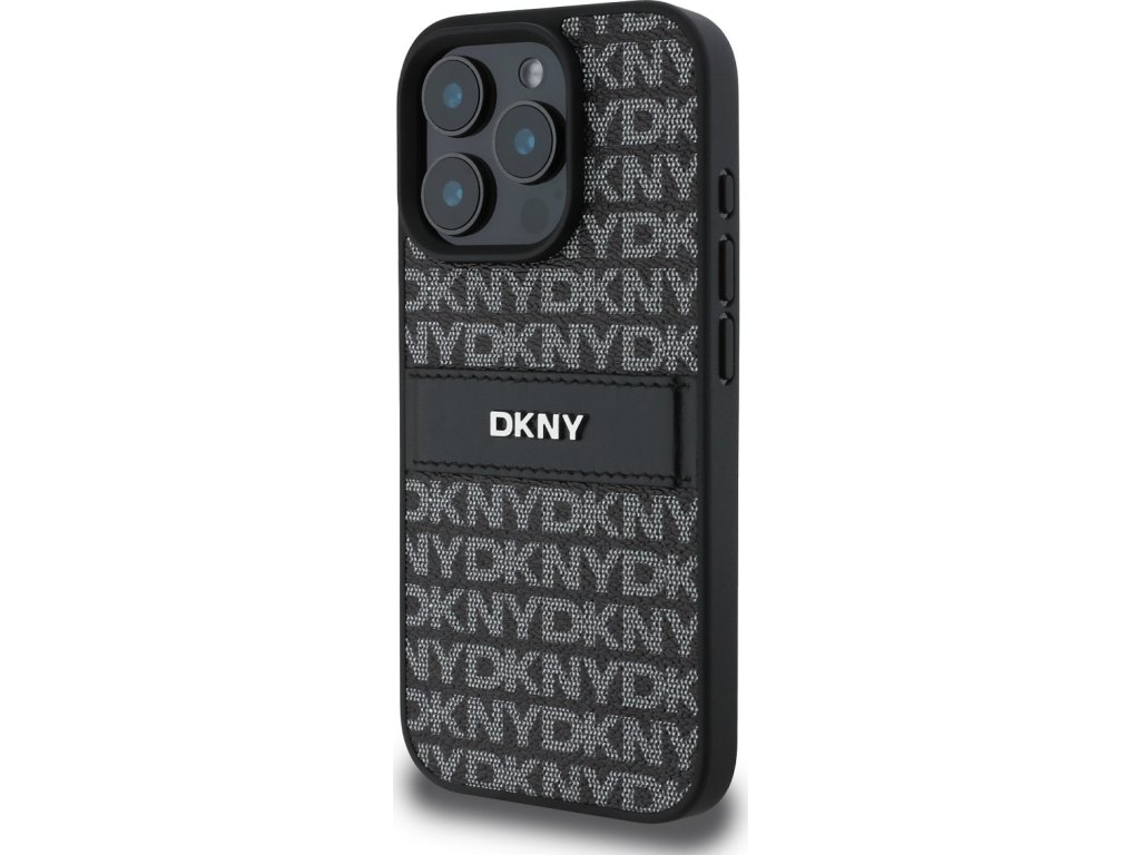 DKNY PU Leather Repeat Pattern Tonal Stripe Zadní Kryt pro iPhone 16 Pro Max Black