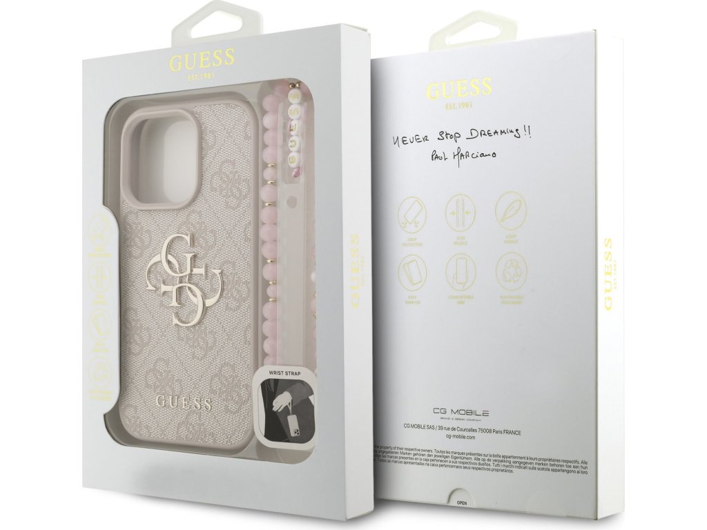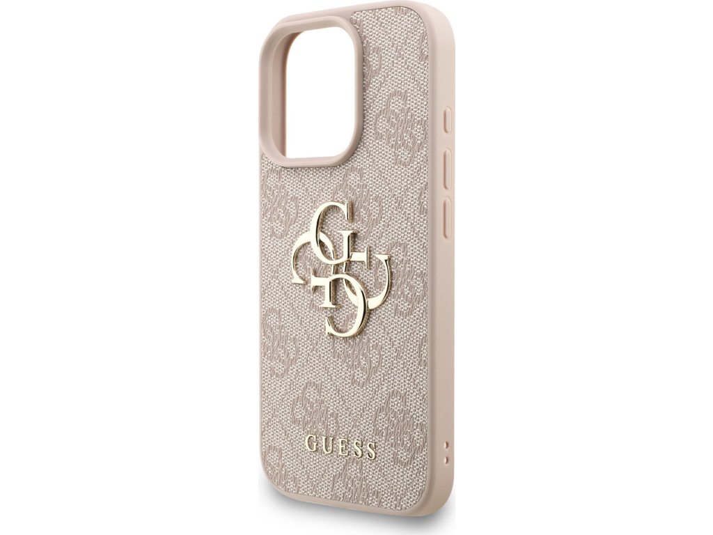 Guess PU 4G Metal Logo Strap Zadní Kryt pro iPhone 16 Pro Max Pink