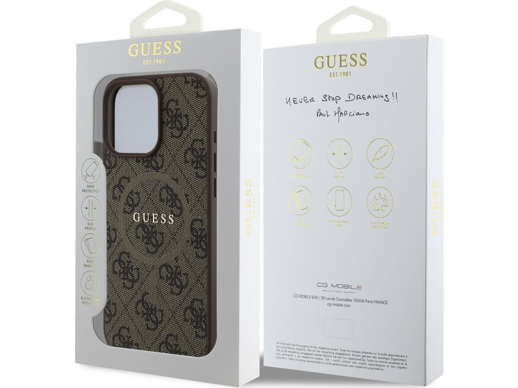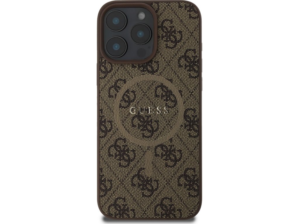 Guess PU Leather 4G Colored Ring MagSafe Zadní Kryt pro iPhone 16 Pro Max Brown