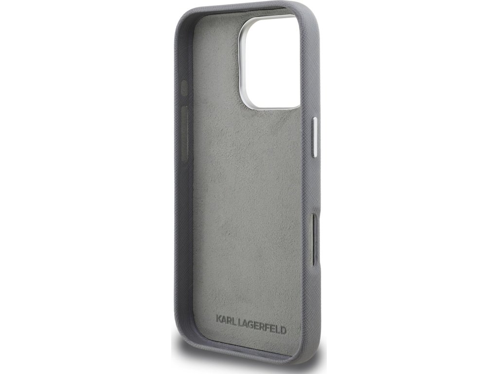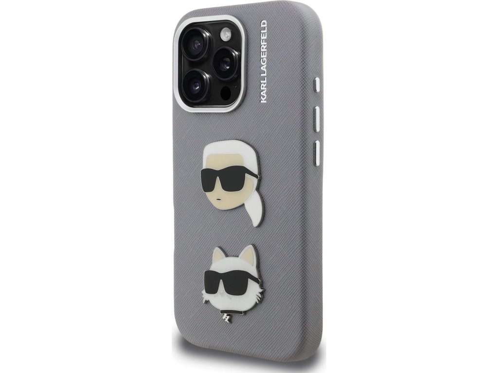 Karl Lagerfeld Grained PU K&CH Heads Zadní Kryt pro iPhone 16 Pro Max Grey