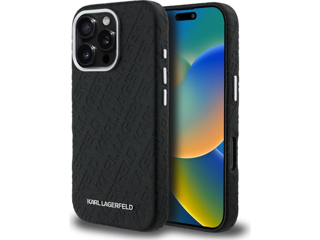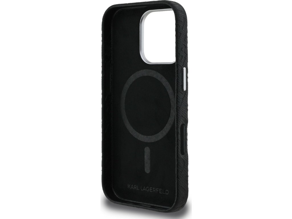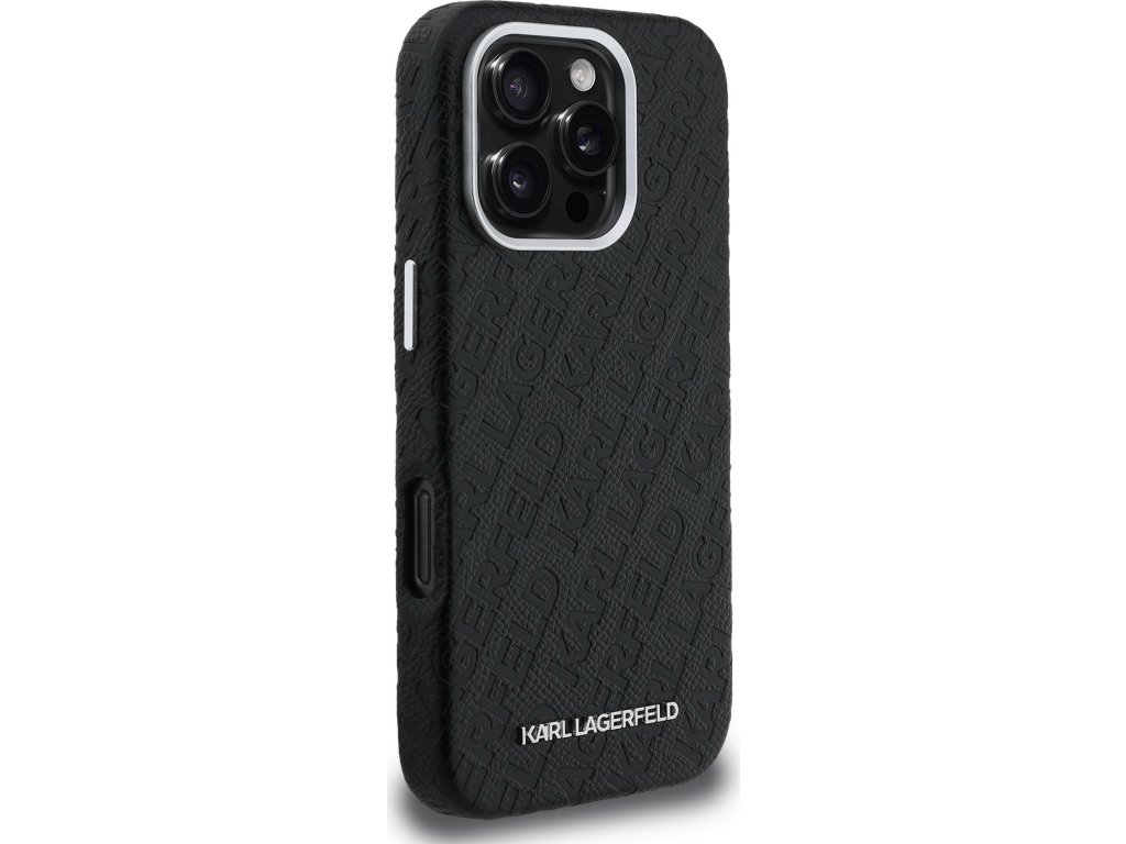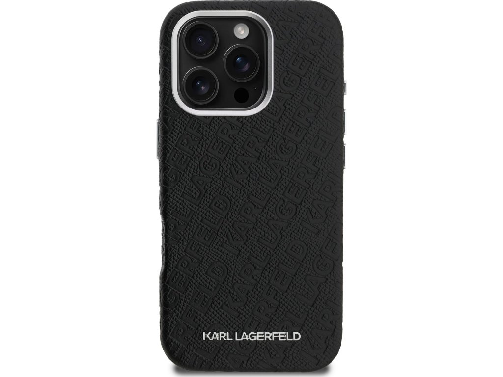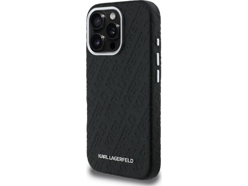 Karl Lagerfeld Grained PU Repeated Logo MagSafe Zadní Kryt pro iPhone 16 Pro Max Black