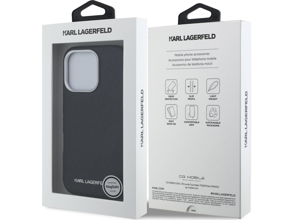 Karl Lagerfeld Grained PU Repeated Logo MagSafe zadní kryt je dokonalý doplněk pro váš telefon i outfit, který kombinuje funkčnost a styl v jednom. Je vyrobený z lehkého a odolného PU s texturou zrnité kůže a nabízí skvělou ochranu a pohodlí při používání. Povrchová úprava krytu zajišťuje, že se skvěle drží v ruce a neklouže, což minimalizuje riziko vyklouznutí telefonu. Díky přesnému tvaru perfektně sedí na telefonu a umožňuje snadný přístup ke všem tlačítkům a konektorům. Tento kryt podporuje technologii MagSafe, což znamená, že je kompatibilní s bezdrátovým nabíjením a dalšími MagSafe doplňky. Elegantní opakující se logo vyražené do PU kůže nabízí nejen decentní, ale také luxusní vzhled. Pokud tedy hledáte kryt, který kombinuje eleganci a funkčnost, je tento kousek od Karla Lagerfelda tou pravou volbou pro vás. Klíčové vlastnosti: - Originál Karl Lagerfeld - Lehký a odolný kryt z PU s texturou zrnité kůže - Skvěle se drží v ruce a neklouže - Podpora MagSafe - Přesně kopíruje tvar telefonu a umožňuje snadný přístup k tlačítkům a konektorům. - Chrání telefon před prachem a poškrábáním - Decentní a funkční doplněk pro váš telefon i outfit
