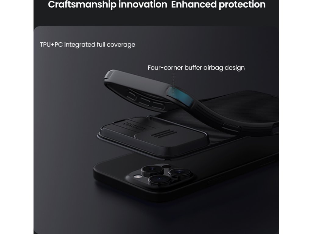 Magnetické pouzdro Nillkin CamShield Pro není jen elegance, ale především funkčnost na nejvyšší úrovni. Je kompatibilní s MagSafe, zakrývá čočky fotoaparátu posuvným krytem a díky airbagům plně chrání hrany a rohy smartphonu. Protiskluzová textura navíc zajišťuje bezpečný úchop.