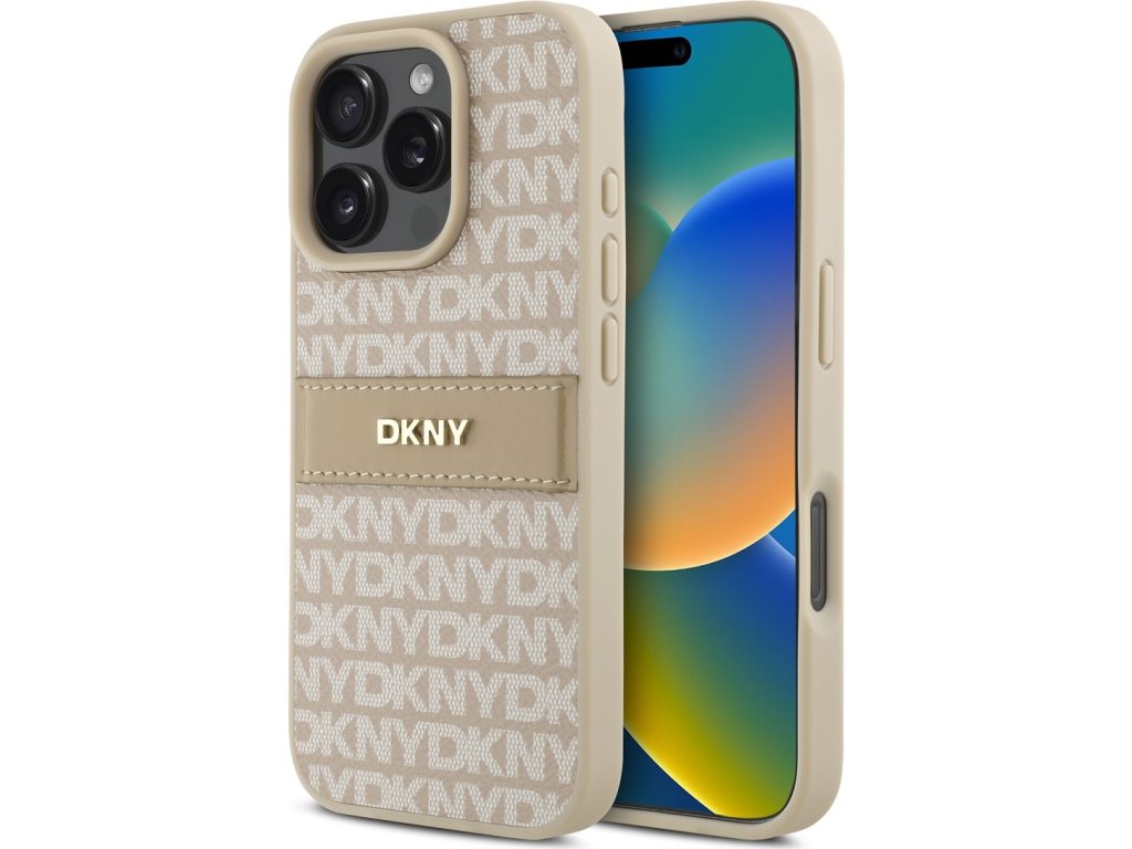 DKNY PU Leather Repeat Pattern Tonal Stripe Zadní Kryt pro iPhone 16 Pro Pink