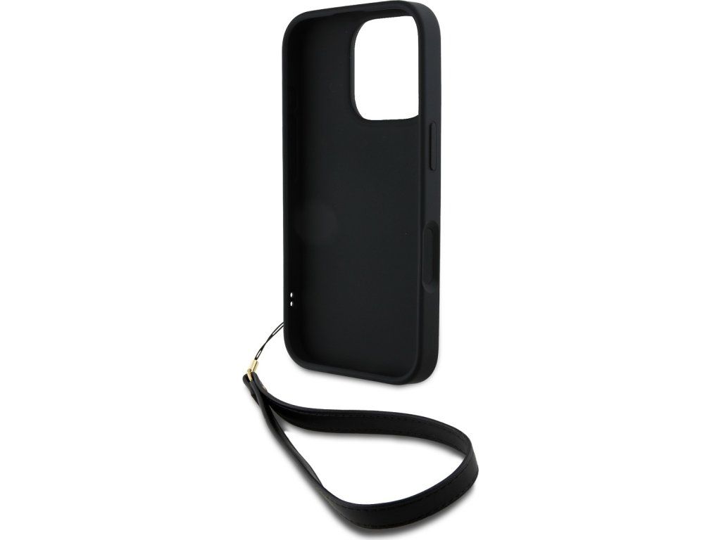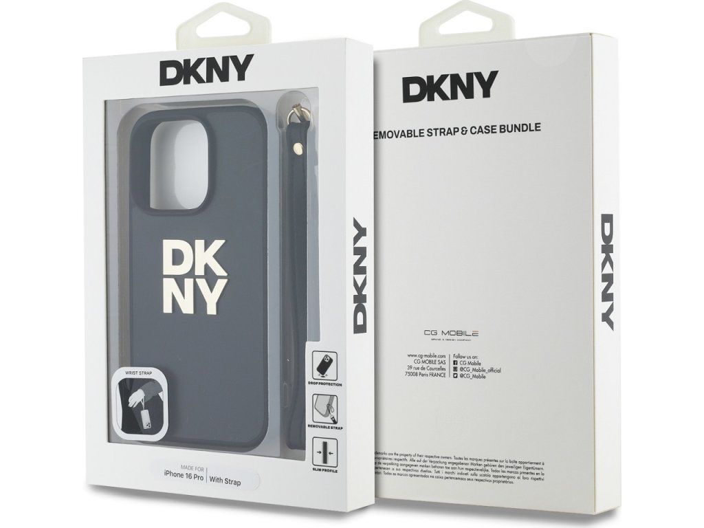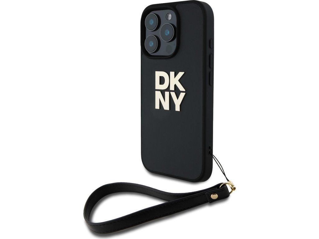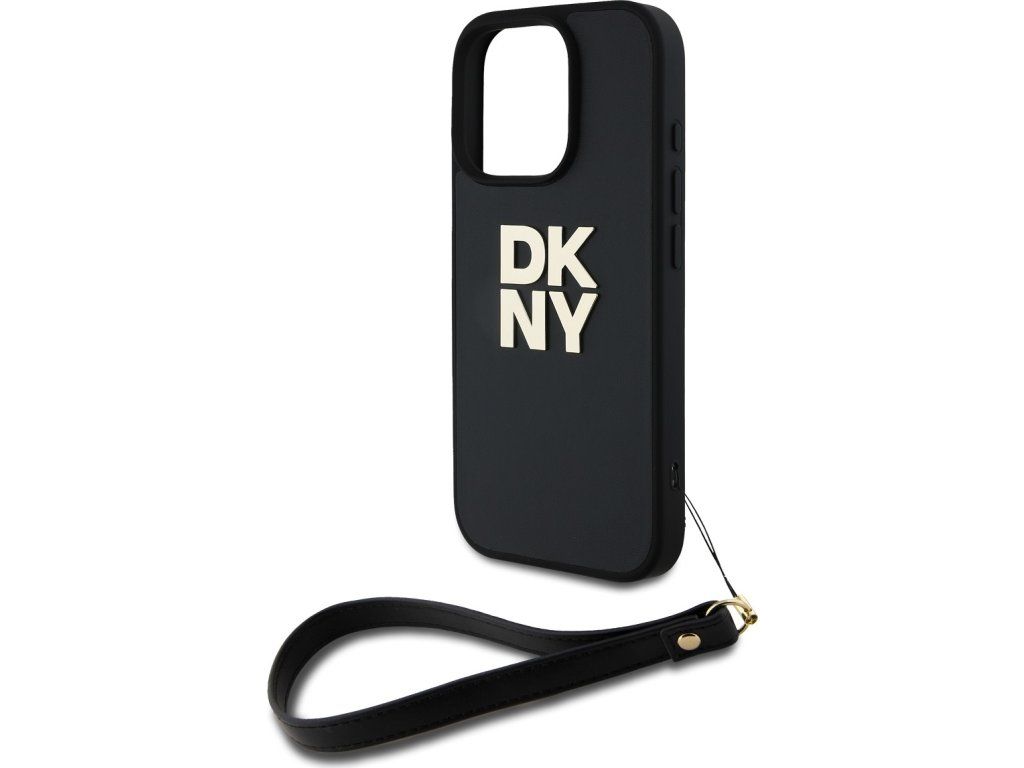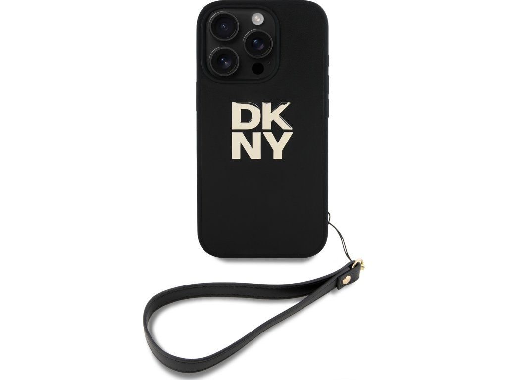 DKNY PU Leather Stack Logo Wrist Strap Zadní Kryt pro iPhone 16 Pro Black