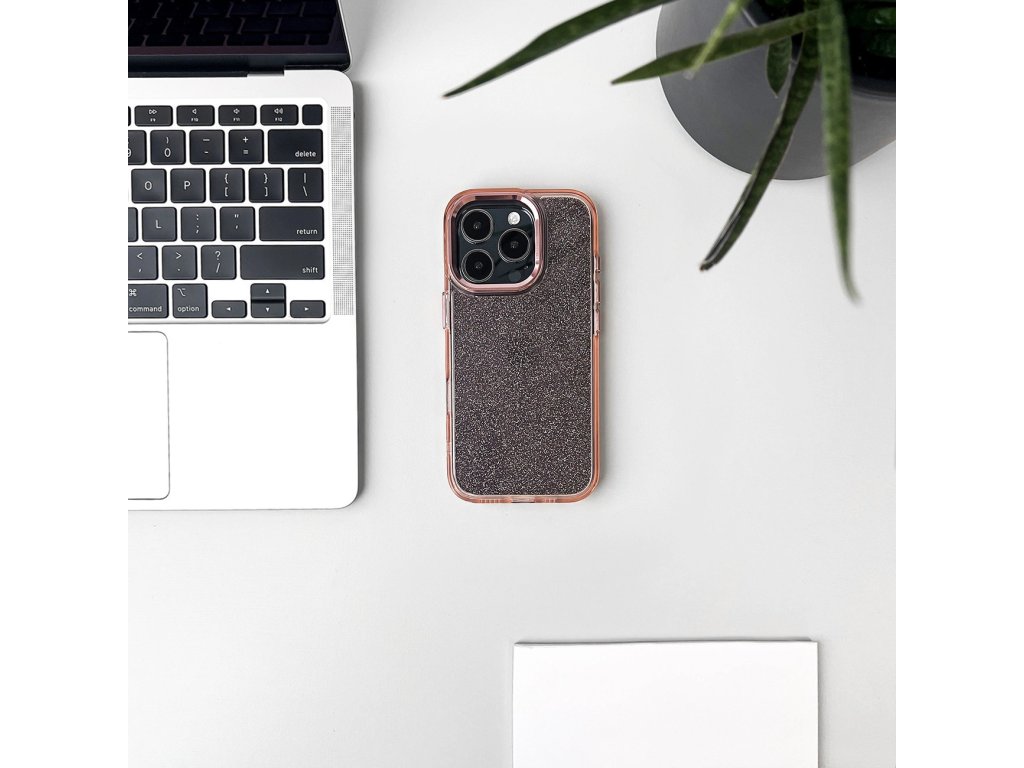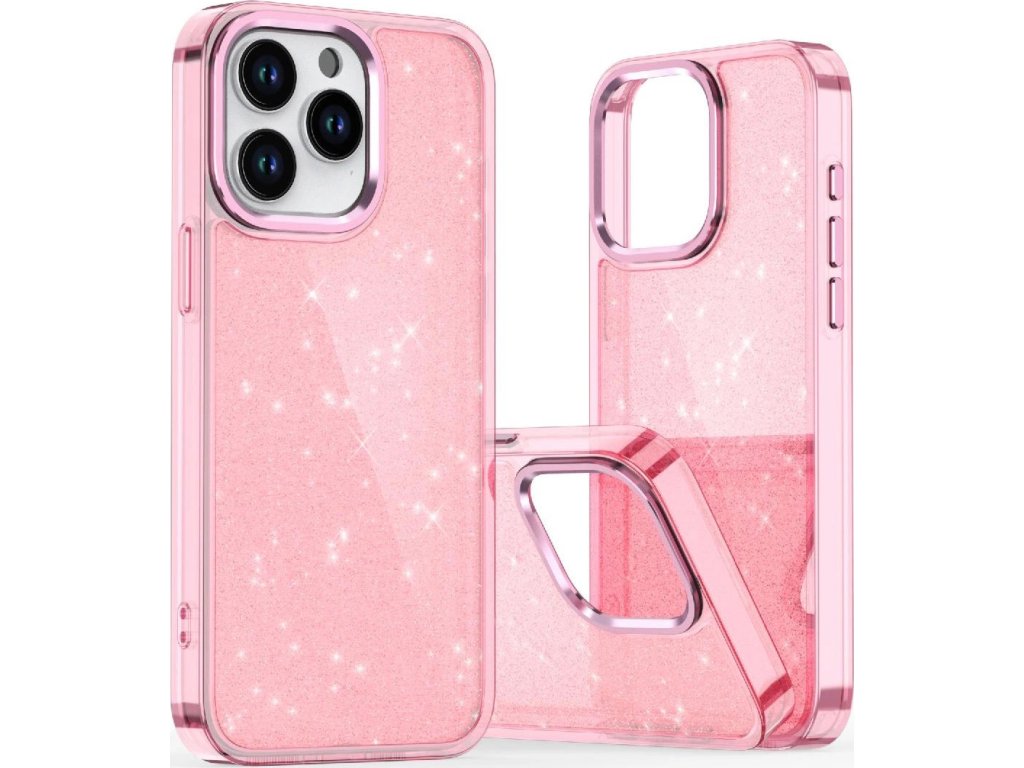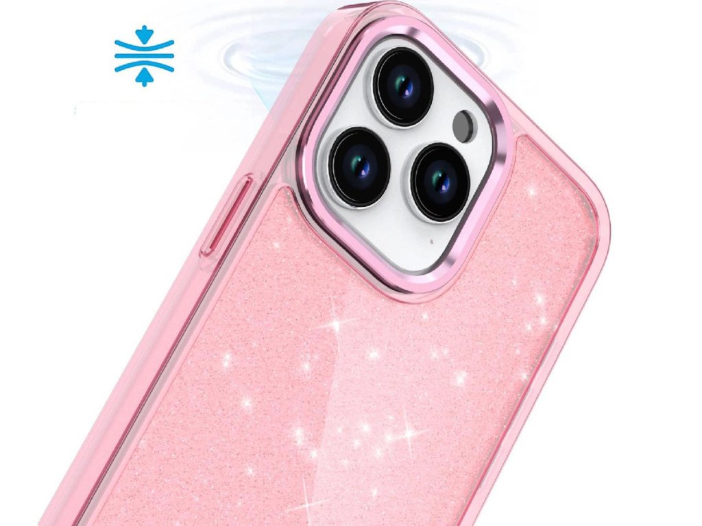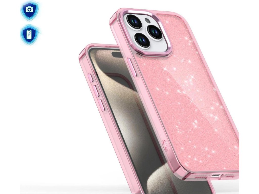 Třpytivý kryt pro iPhone 16 Pro - růžový s třpytkami
