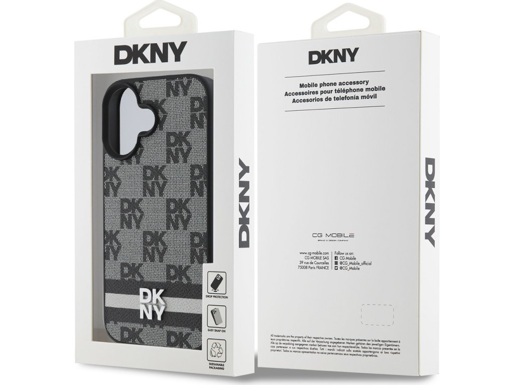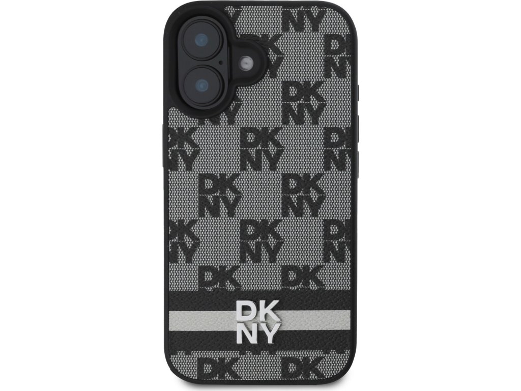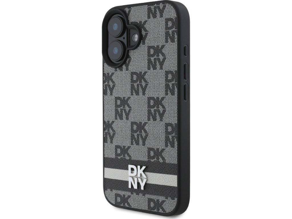 DKNY PU Leather Checkered Pattern and Stripe Zadní Kryt pro iPhone 16 Black