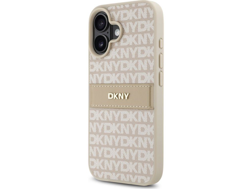 DKNY PU Leather Repeat Pattern Tonal Stripe Zadní Kryt pro iPhone 16 Pink