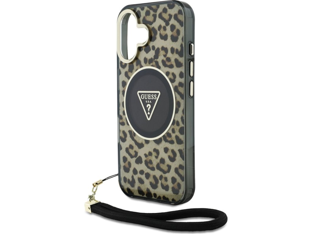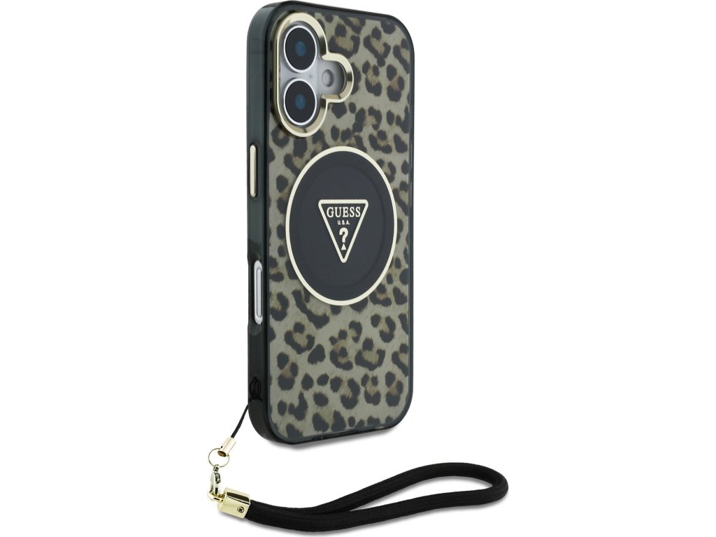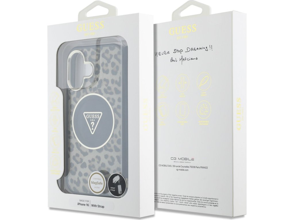 Guess IML Leopard Triangle Logo Strap MagSafe Zadní Kryt pro iPhone 16 Brown
