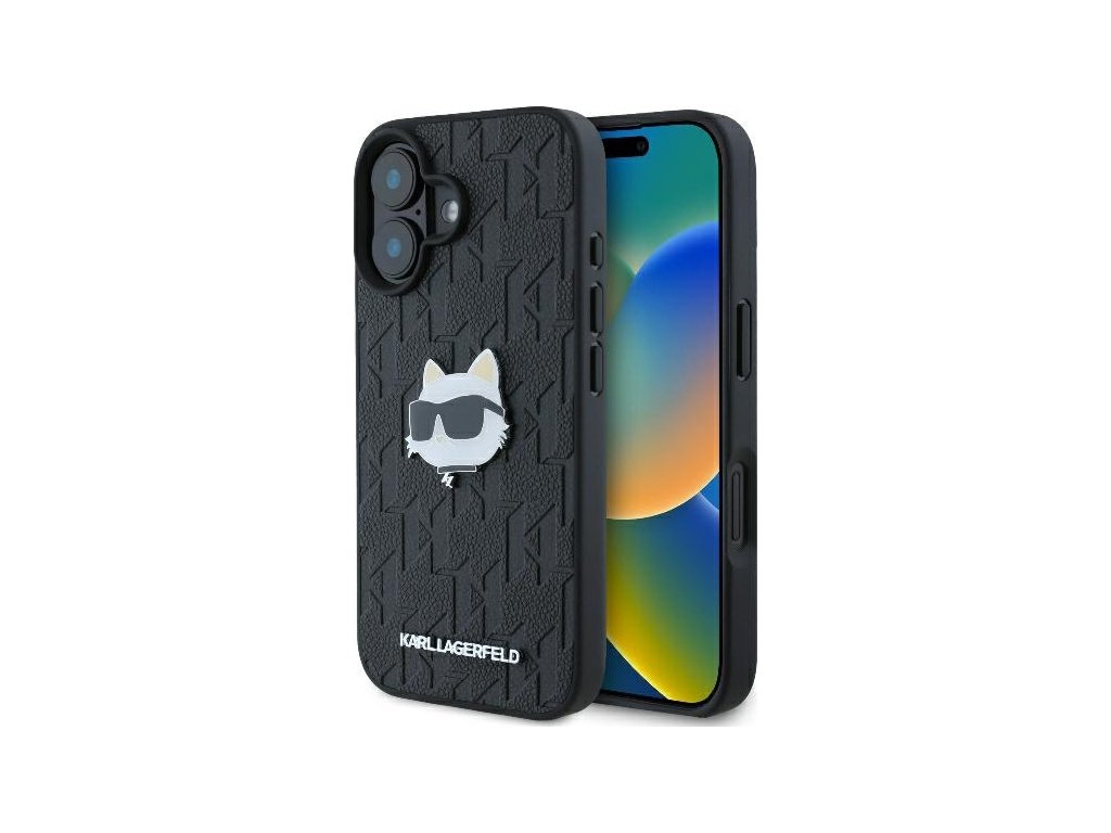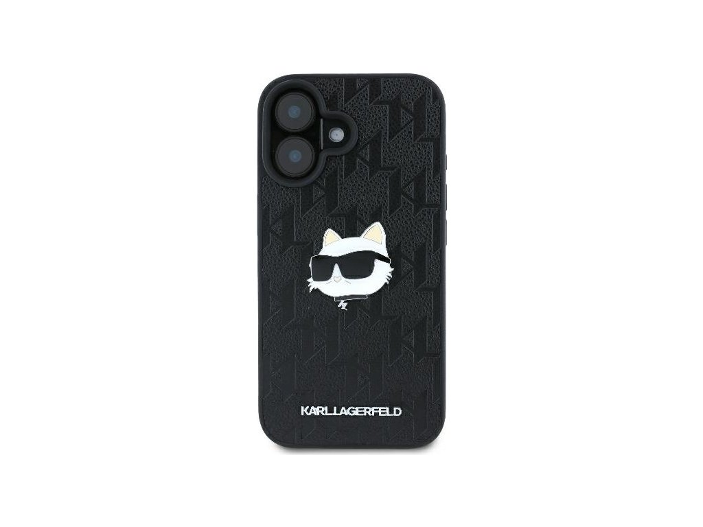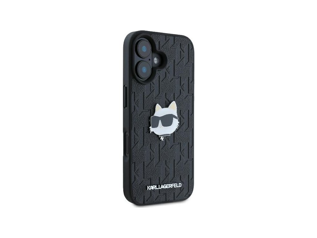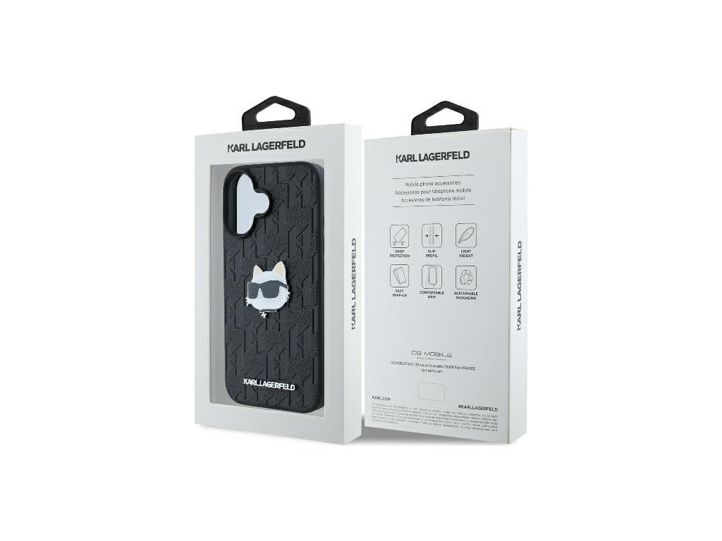 Pouzdro Karl Lagerfeld pro iPhone 16 6,1" KLHCP16SPGKLCHPK černé s pevnou monogramovou hlavou Choupette