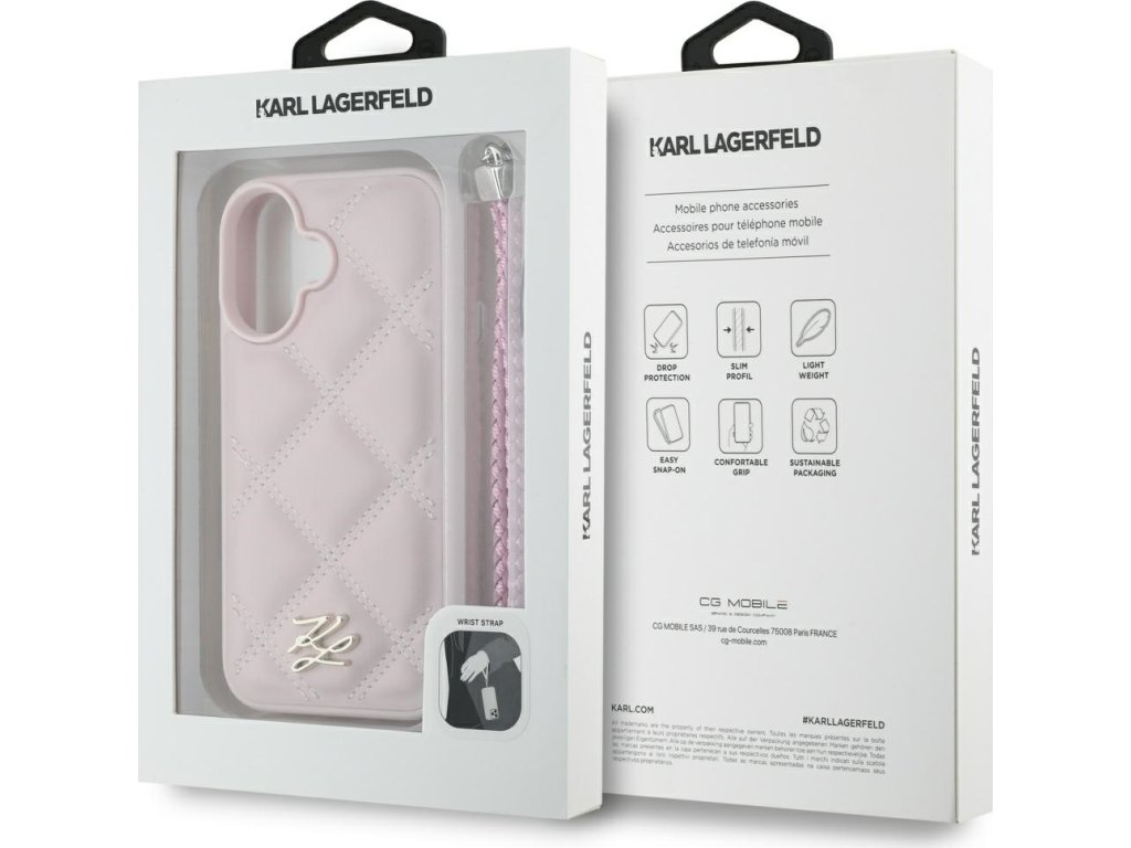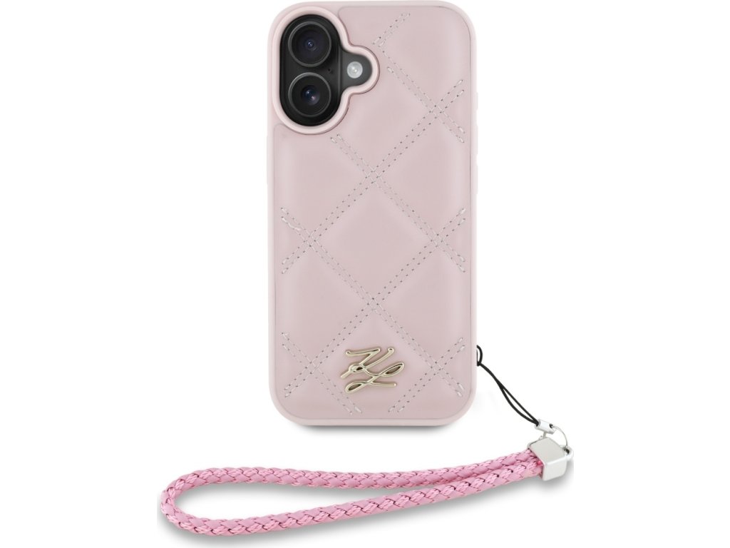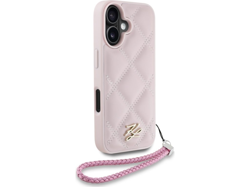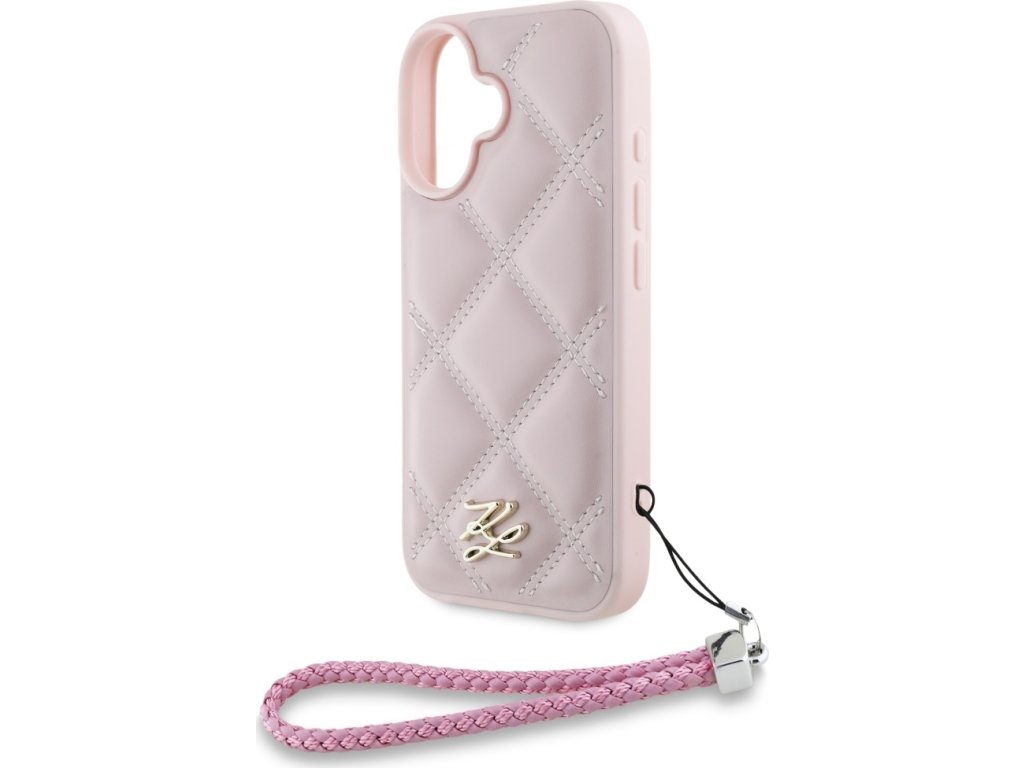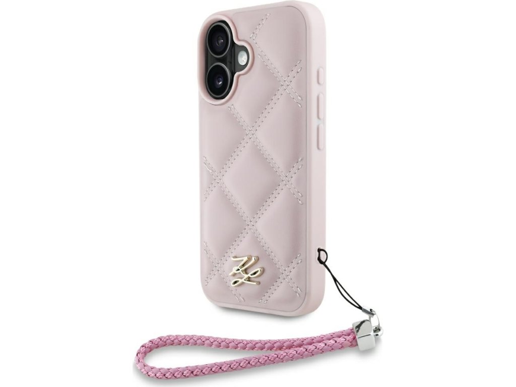Prošívaný kryt Karl Lagerfeld HC Quilted PU s iniciálami a řetízkovým řemínkem pro iPhone 16 růžový