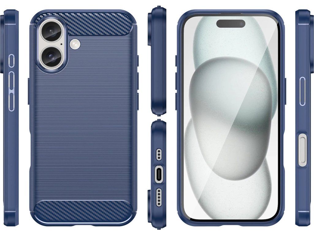 Silikonový kryt Carbon pro iPhone 16 - modrý