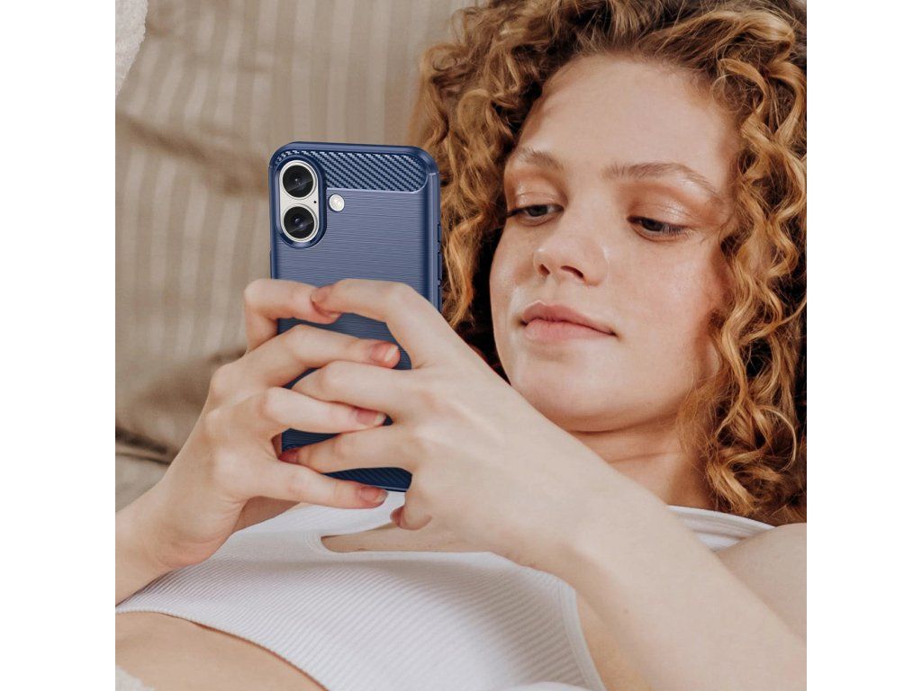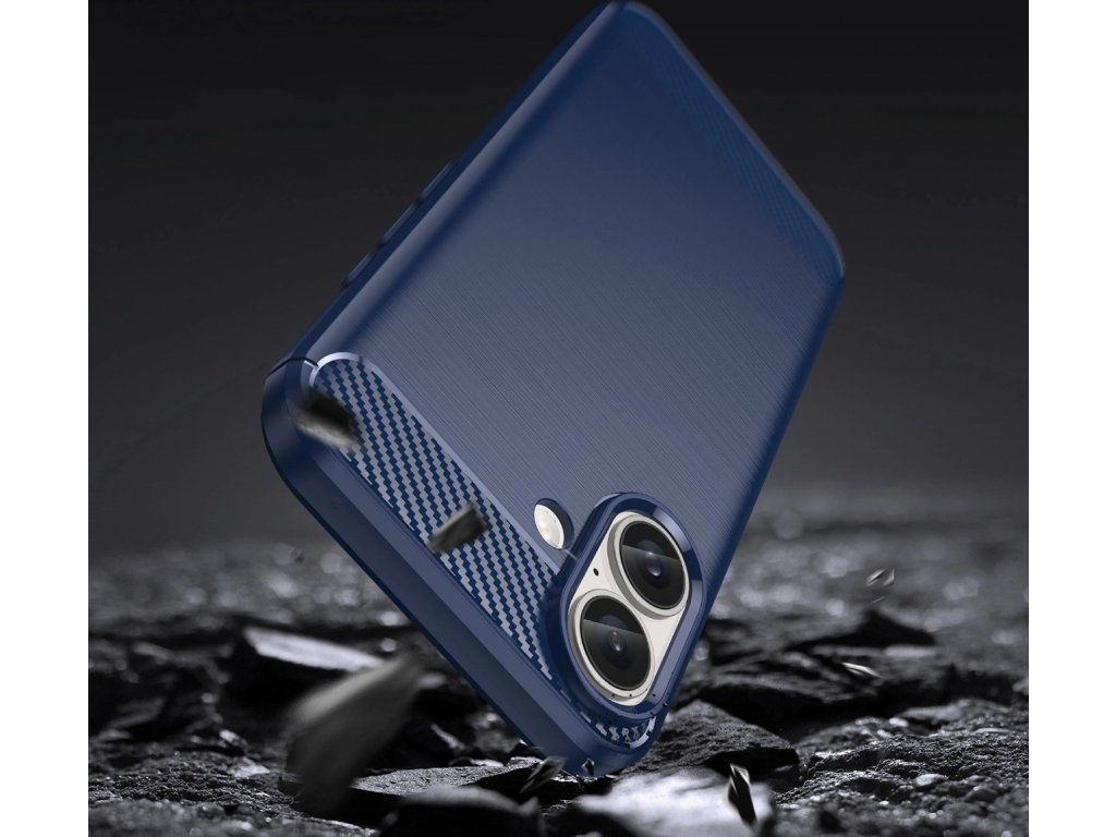 Silikonový kryt Carbon Case pro iPhone 16 - modrá
