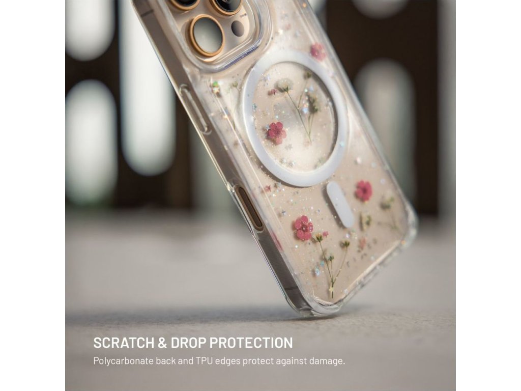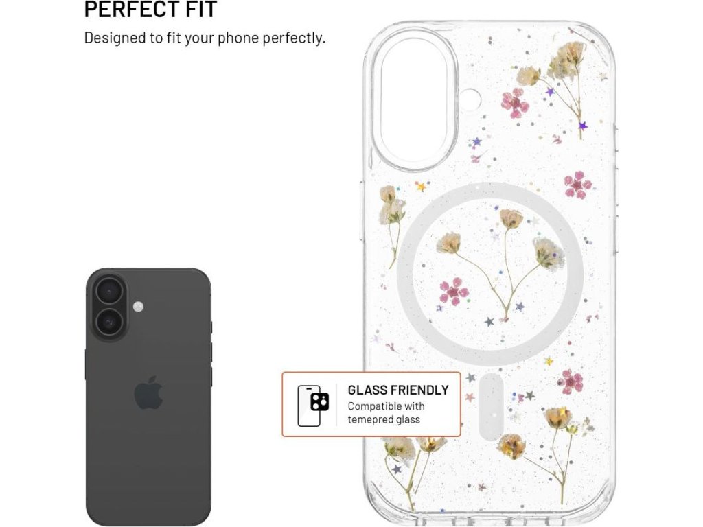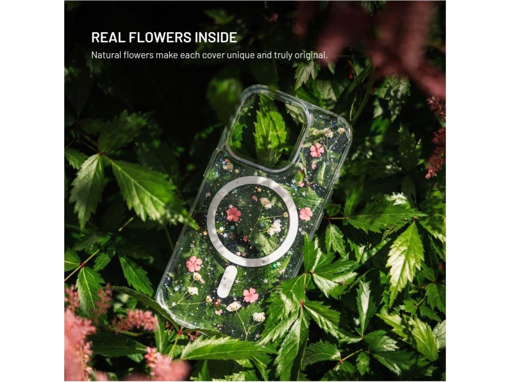 - pravé květy a jemné třpytky zalisované v krytu