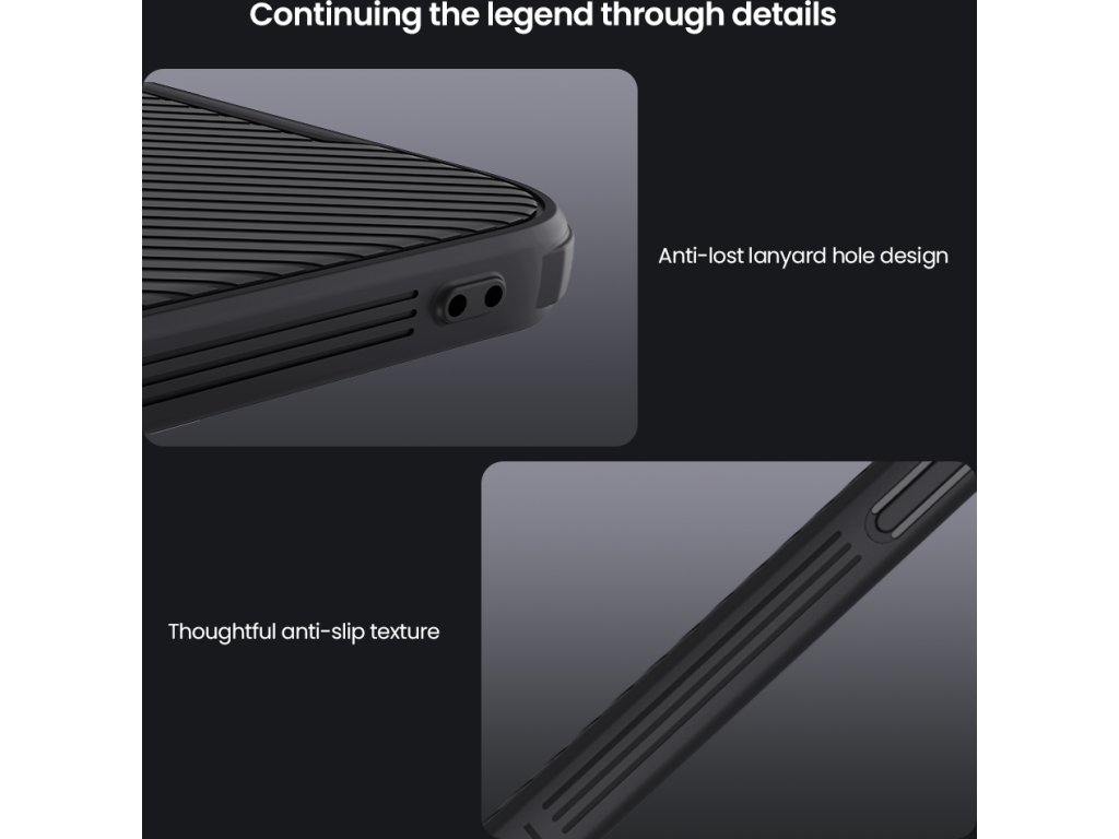 Jednou z klíčových výhod pouzdra Nillkin CamShield Pro je jeho povrch - příjemný na dotek, odolný vůči otiskům prstů a mastným skvrnám. Zaručuje nejen pohodlí při používání, ale i estetický vzhled smartphonu po dlouhou dobu.