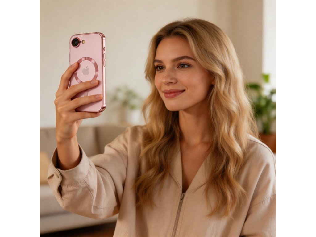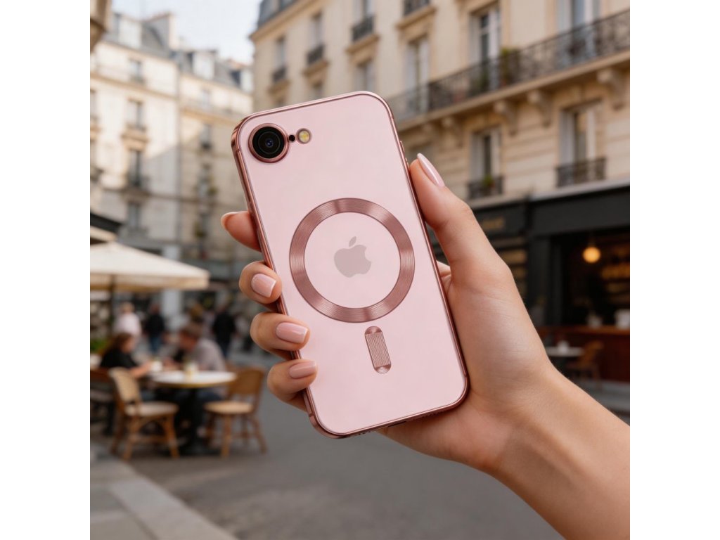 Electroplated kryt s MagSafe pro iPhone 16e - růžový Zvýrazněte eleganci a funkčnost svého smartphonu s pouzdrem Electroplated Case s MagSafe.