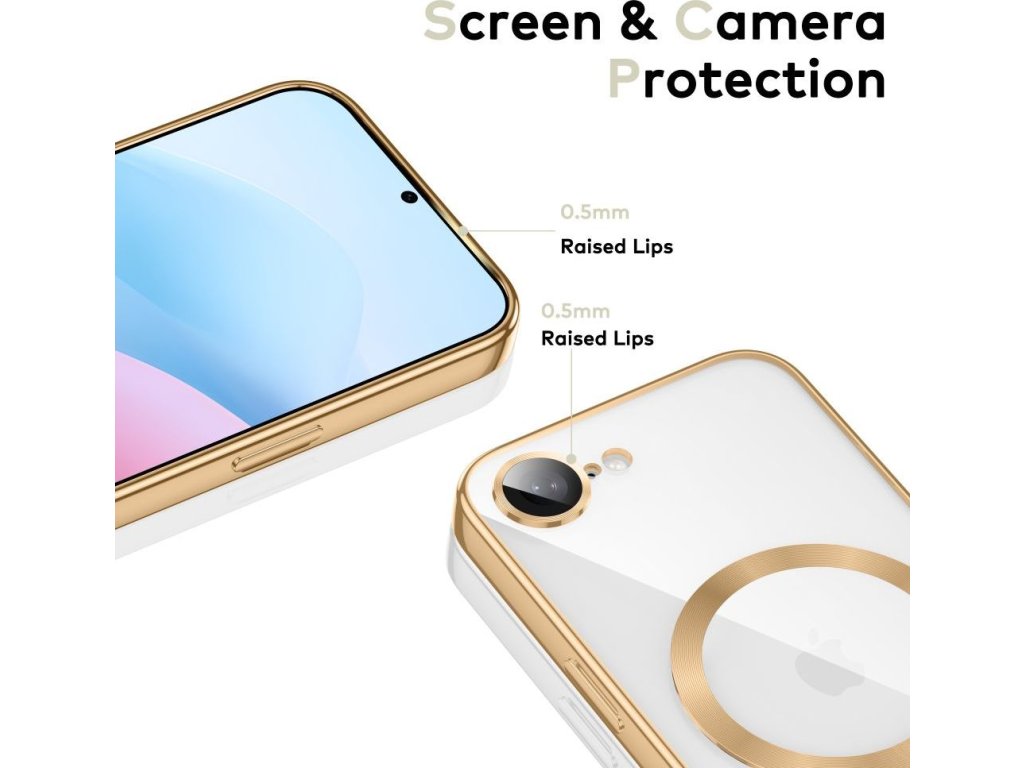 Electroplated kryt s MagSafe pro iPhone 16e - zlatý Zvýrazněte eleganci a funkčnost svého smartphonu s pouzdrem Electroplated Case s MagSafe.