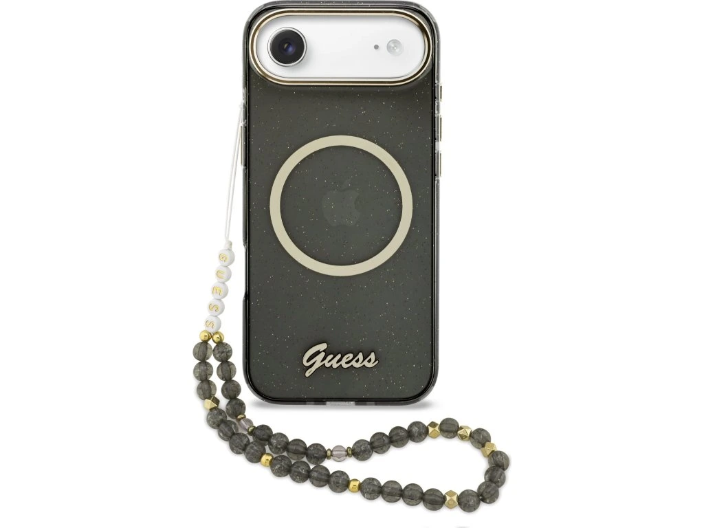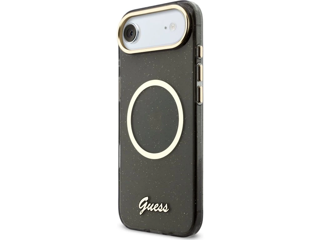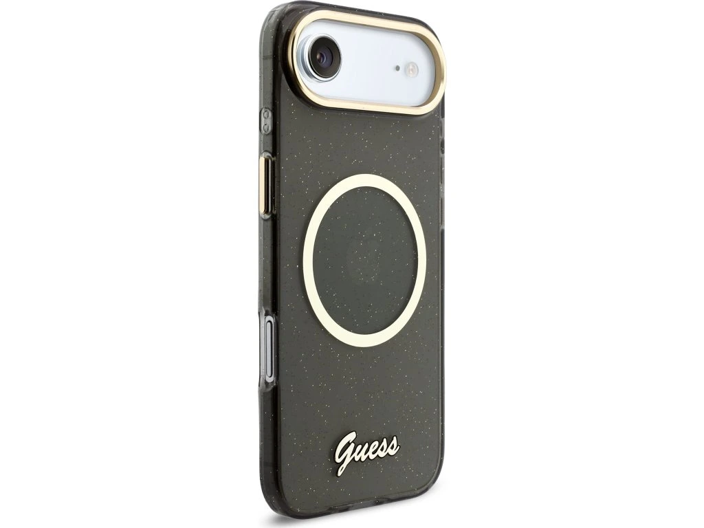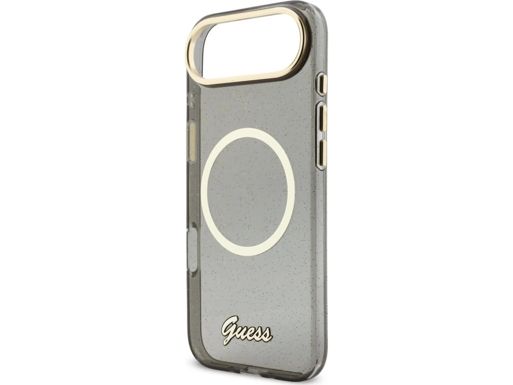 Guess IML Glitter Script Strap MagSafe Zadní Kryt pro iPhone Air Black
