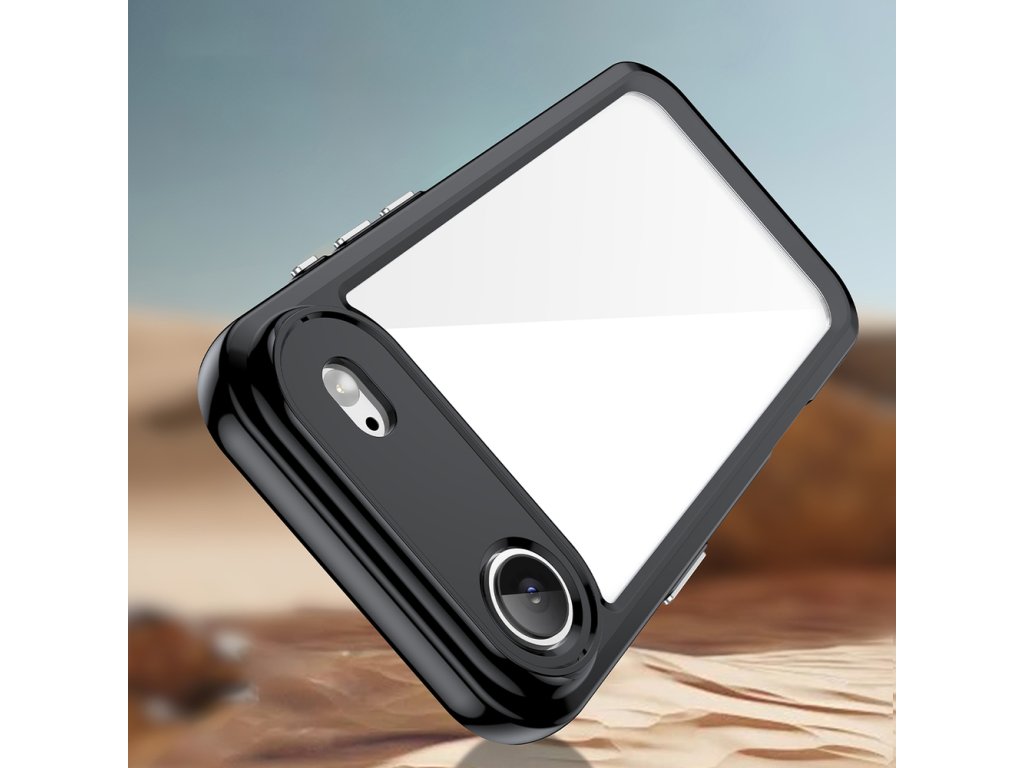- Stylový barevný kontrast: Průhledná zadní strana a černé rámečky vytvářejí elegantní a moderní kombinaci pro uživatele, kteří oceňují design.