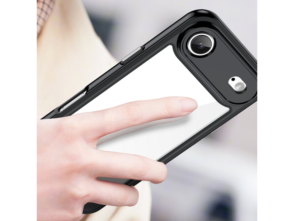Estetická kombinace průhlednosti a černé barvy dodává telefonu eleganci, aniž by dominovala jeho vzhledu.