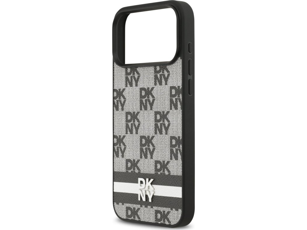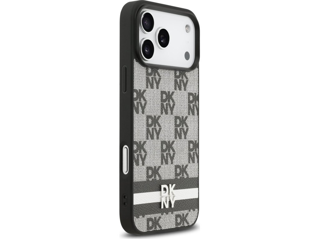 DKNY PU Leather Checkered Pattern and Stripe Zadní Kryt pro iPhone 17 Pro Max Black