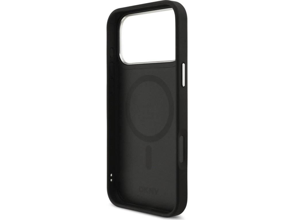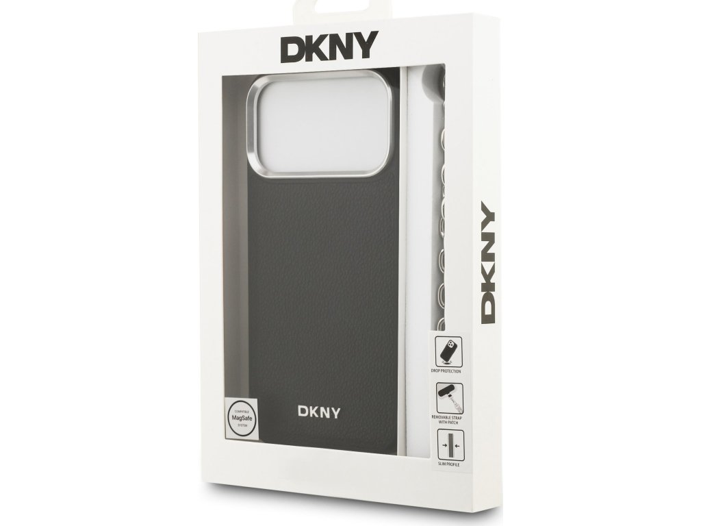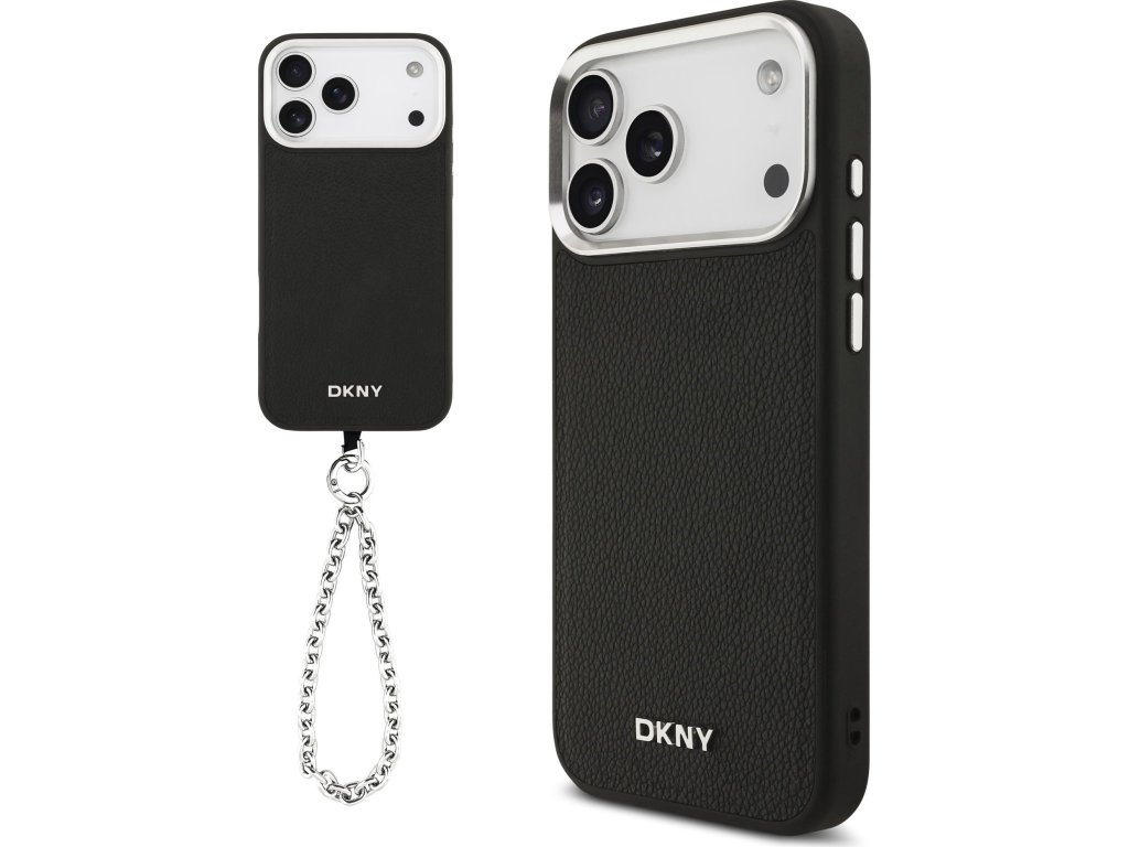 DKNY PU Leather Metal Logo Wrist Chain MagSafe Zadní Kryt pro iPhone 17 Pro Max Black