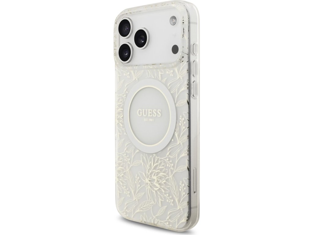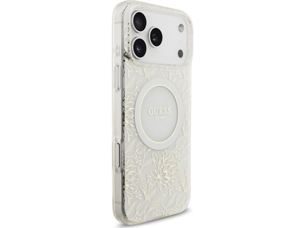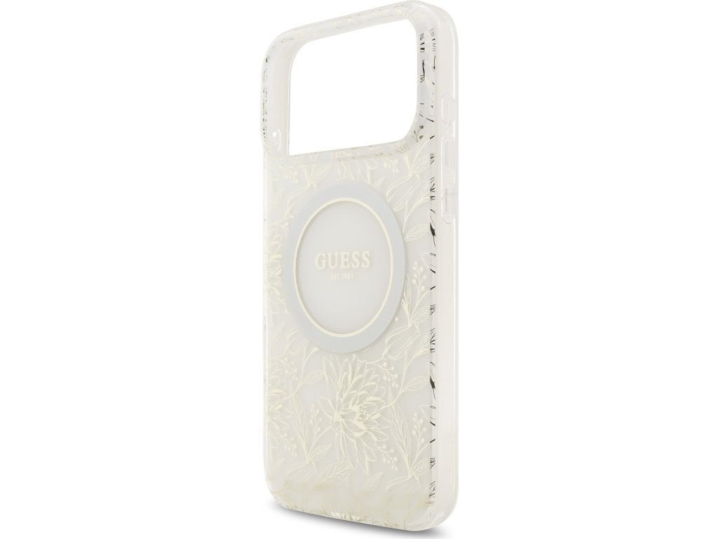 Guess IML Flowers Allover Strap MagSafe Zadní Kryt pro iPhone 17 Pro Max White