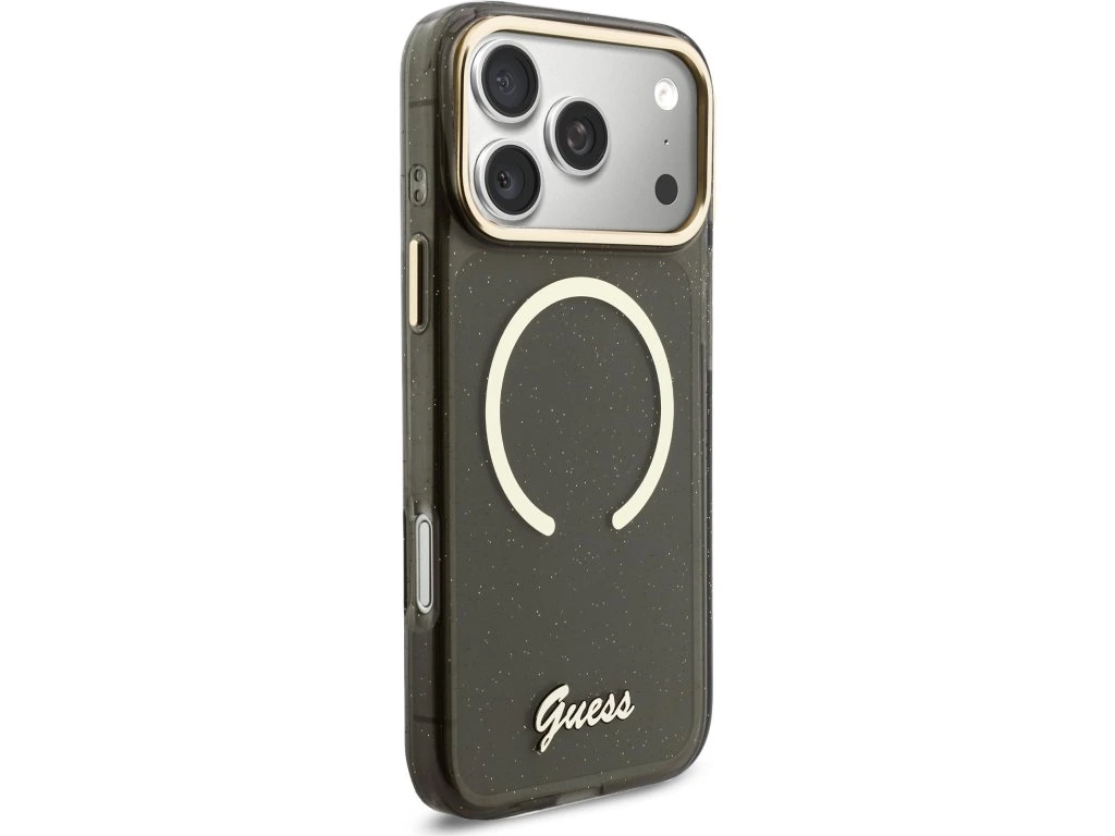 Guess IML Glitter Script Strap MagSafe Zadní Kryt pro iPhone 17 Pro Max Black