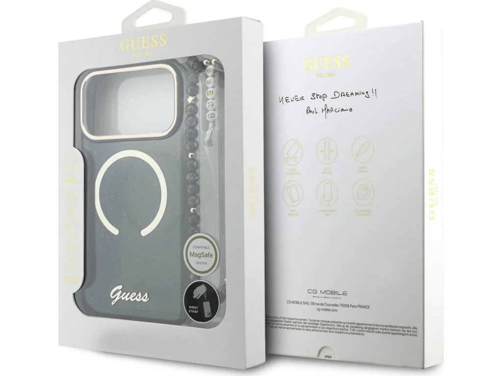 Guess IML Glitter Script Strap MagSafe zadní kryt na telefon je skvělým doplňkem pro všechny milovníky stylu a praktičnosti. Tento kryt je vyroben z kombinace pevného PC plastu na zadní straně a TPU měkkého plastu na bocích, což vytváří dokonalou symbiózu odolnosti a pohodlí. Díky přesnému tvaru perfektně sedí na telefonu a umožňuje snadný přístup ke všem tlačítkům a konektorům. Tento kryt podporuje technologii MagSafe, což znamená, že je kompatibilní s bezdrátovým nabíjením a dalšími MagSafe doplňky. Design krytu vyniká logem Guess na zadní straně a třpytivým lookem, což z něj činí nejen praktický, ale i stylový doplněk, který skvěle doplní váš outfit. Součástí krytu je i korálkové poutko, které plní nejen estetickou funkci, ale zajistí také bezpečné držení telefonu v ruce. Pokud hledáte kryt, který kombinuje eleganci a funkčnost, je tento kousek od GUESS tou pravou volbou pro vás. Klíčové vlastnosti: - Originál Guess - Poutko kolem zápěstí součástí krytu - Lehký a odolný kryt z prémiového PC a TPU - Skvěle se drží v ruce a neklouže - Podpora MagSafe - Přesně kopíruje tvar telefonu a umožňuje snadný přístup k tlačítkům a konektorům. - Chrání telefon před prachem a poškrábáním - Stylový a funkční doplněk pro váš telefon i outfit
