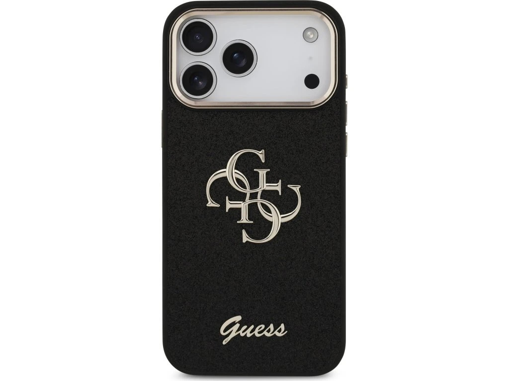 Guess PU Fixed Glitter 4G Metal Frame Zadní Kryt pro iPhone 17 Pro Max Black