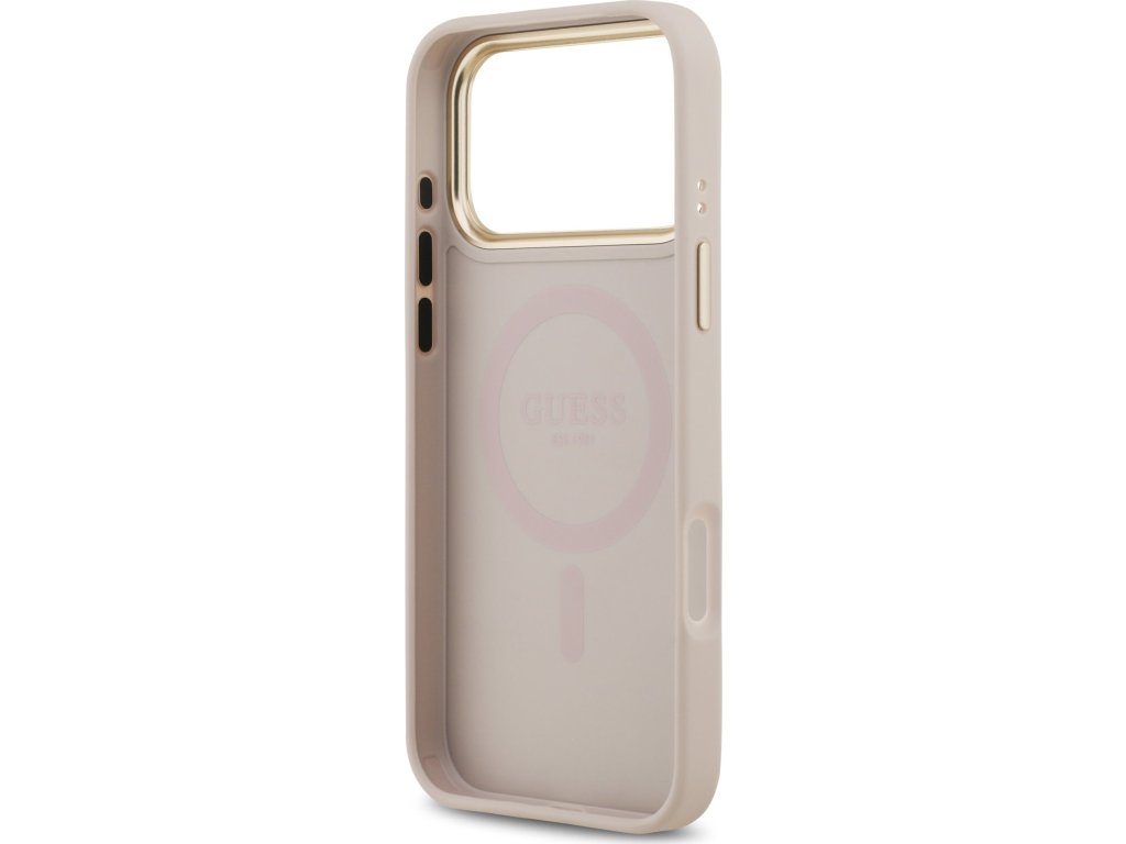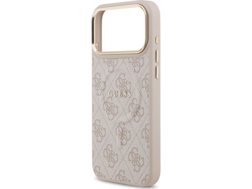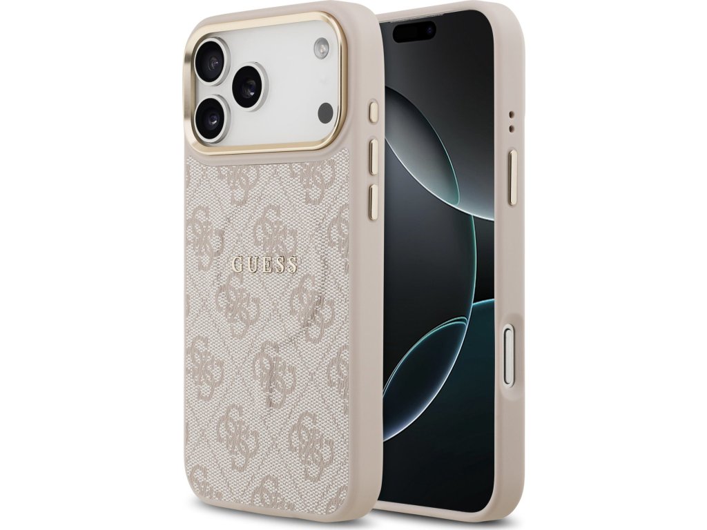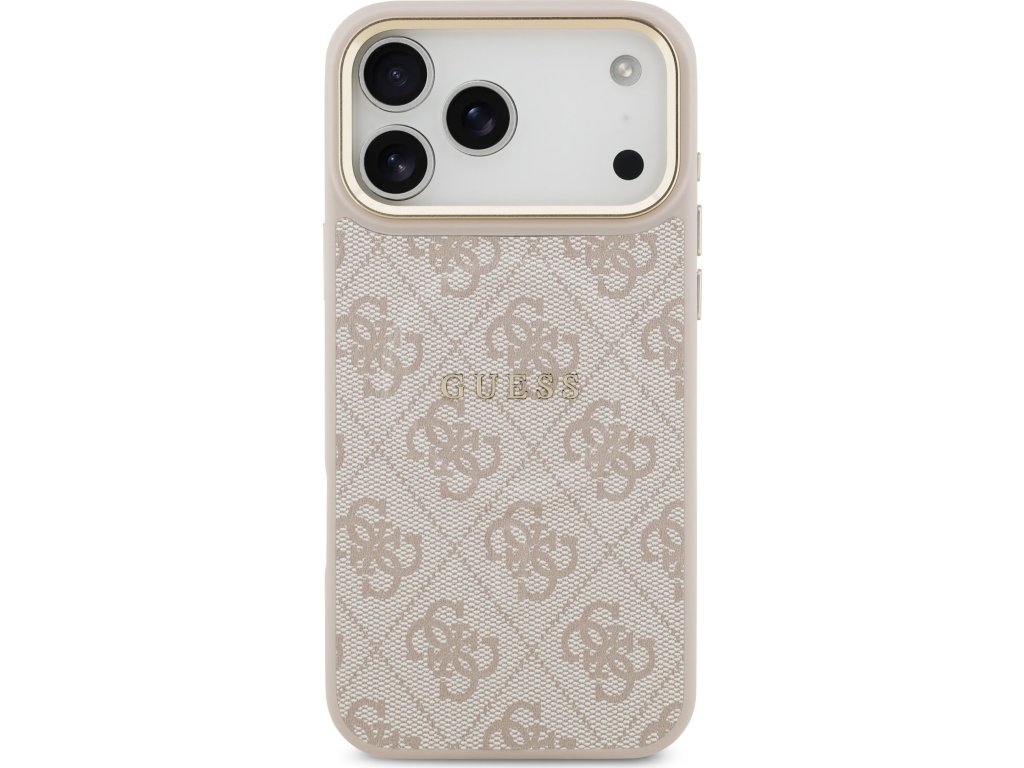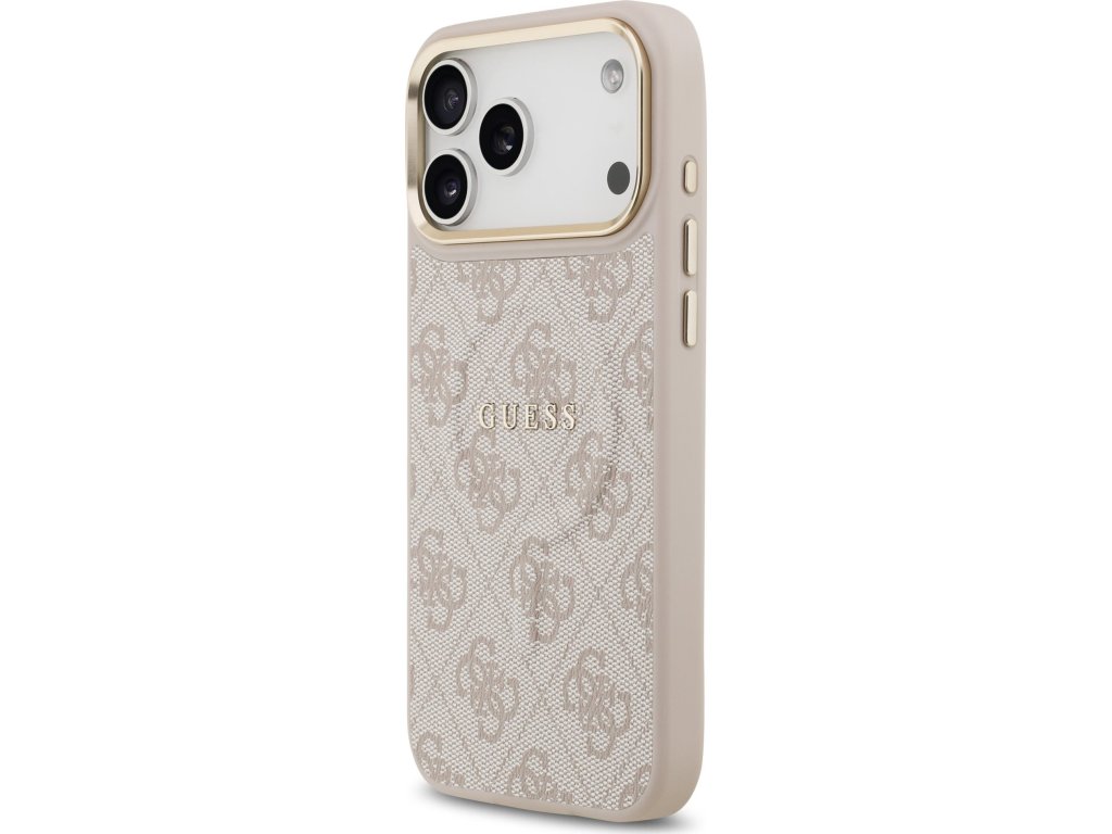 Guess PU Leather 4G Gold Frame MagSafe Zadní Kryt pro iPhone 17 Pro Max Pink