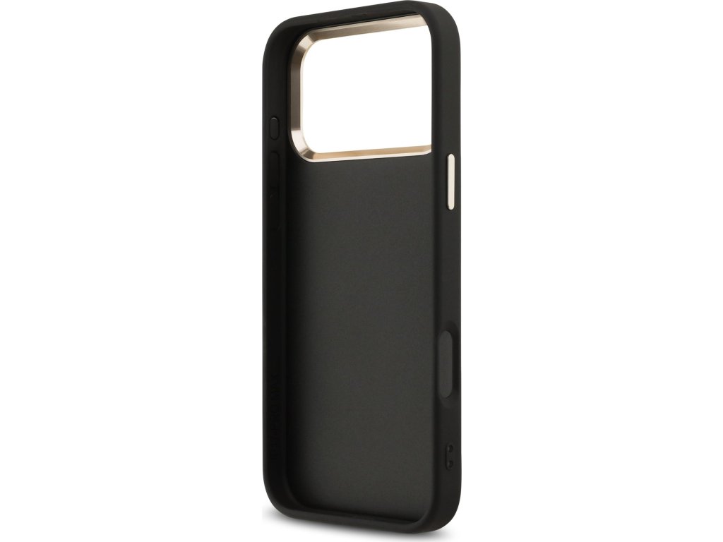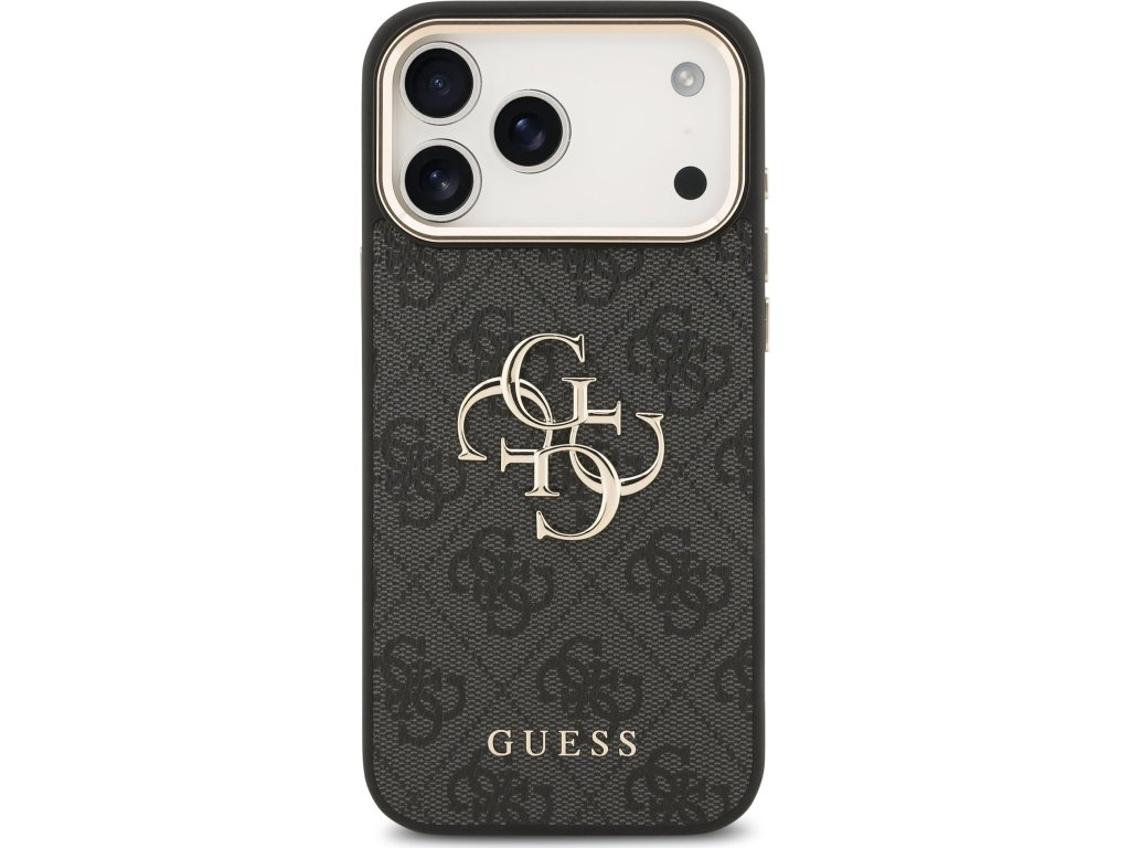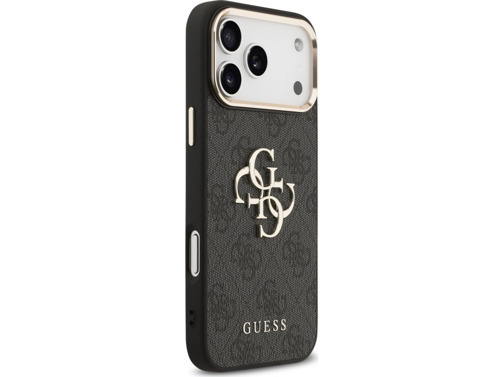 Guess PU Leather 4G Metal Logo Gold Frame Zadní Kryt pro iPhone 17 Pro Max Black