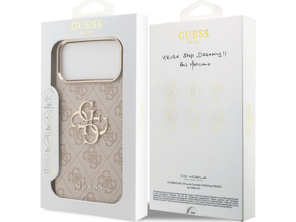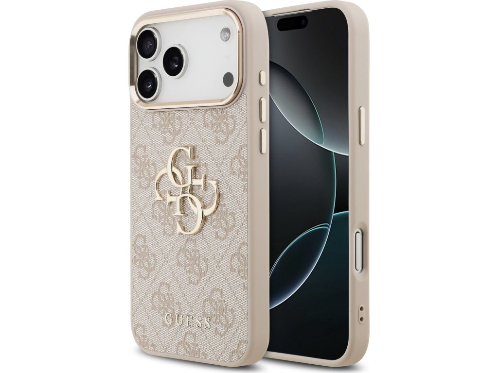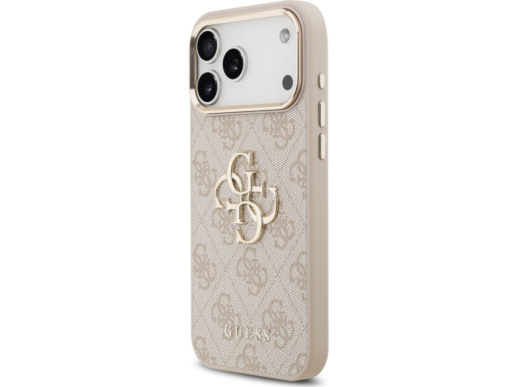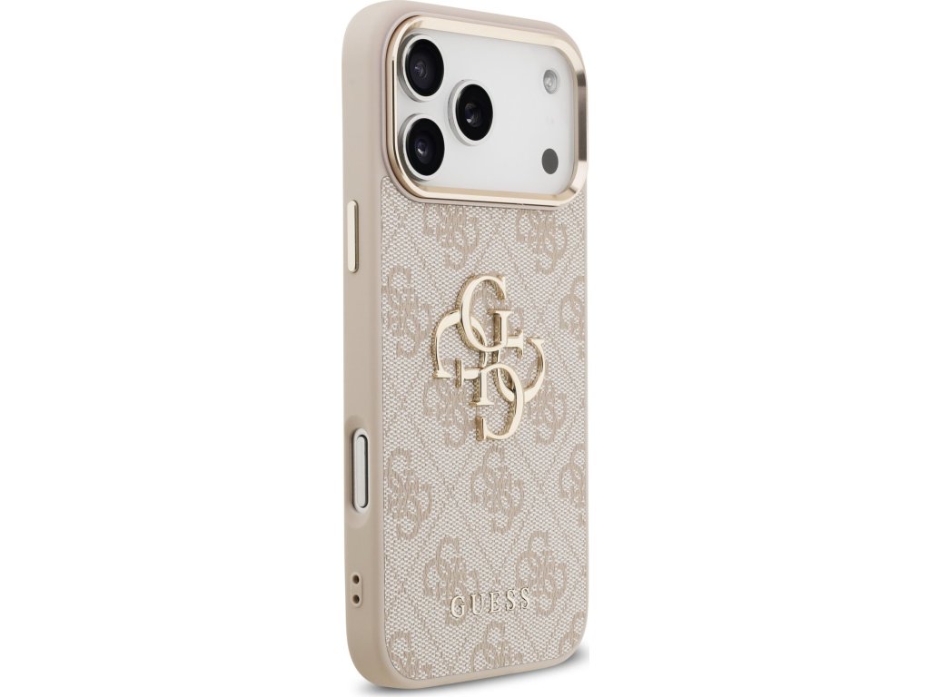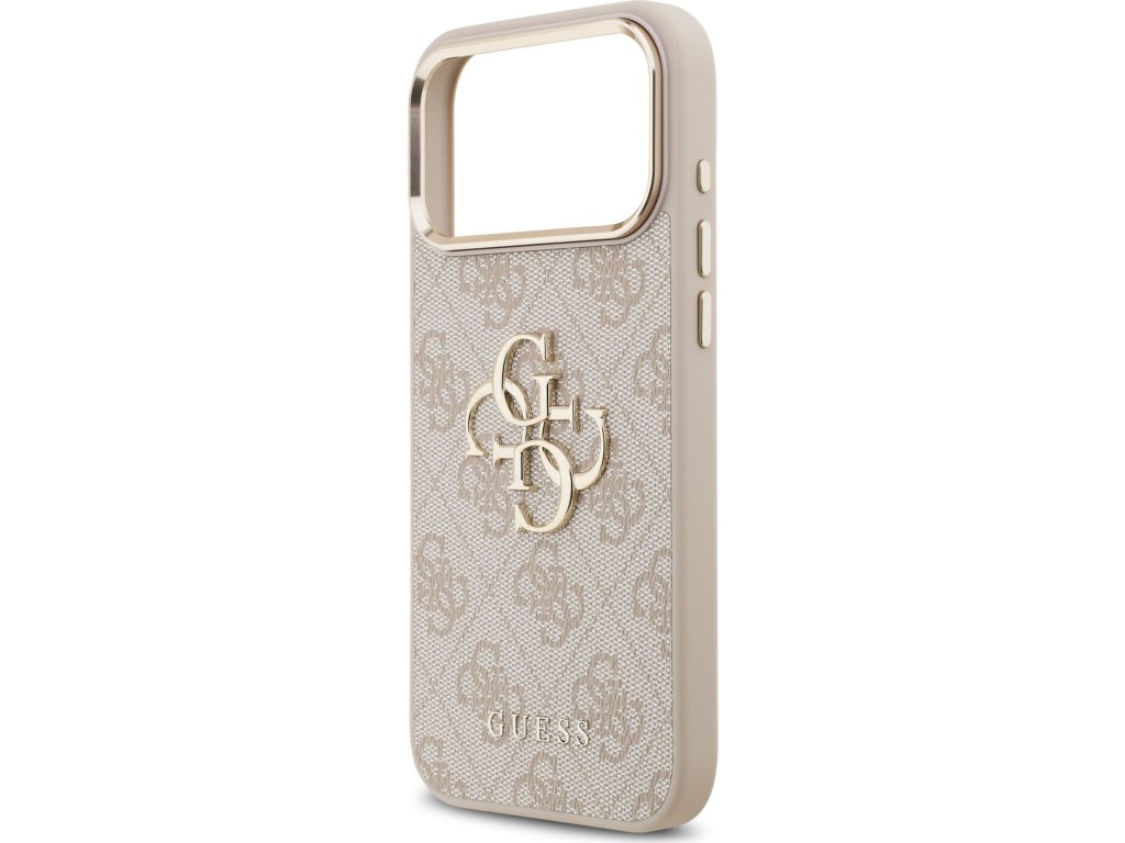 Guess PU Leather 4G Metal Logo Gold Frame Zadní Kryt pro iPhone 17 Pro Max Pink