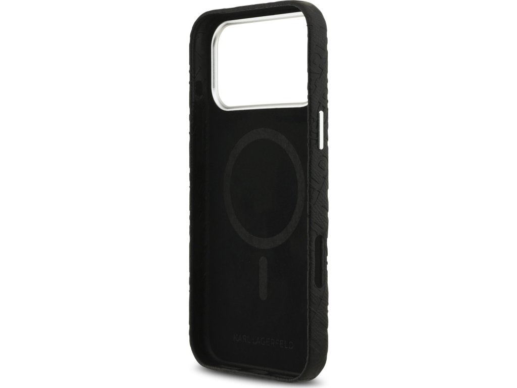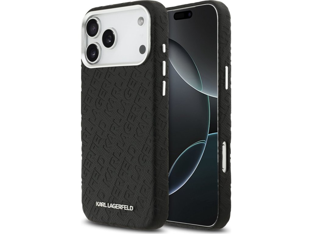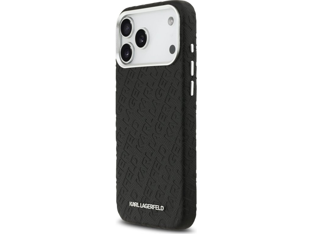 Karl Lagerfeld Grained PU Repeated Logo MagSafe Zadní Kryt pro iPhone 17 Pro Max Black