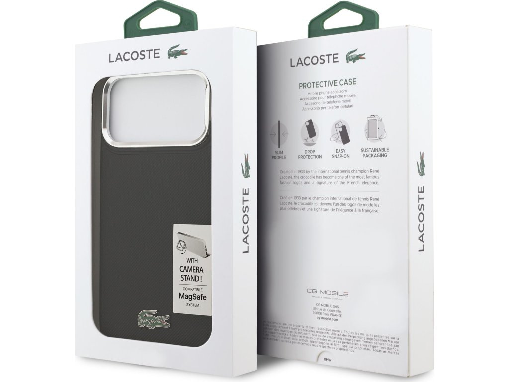 Lacoste Iconic Petit Pique Camera Stand MagSafe Zadní Kryt pro iPhone 17 Pro Max Black