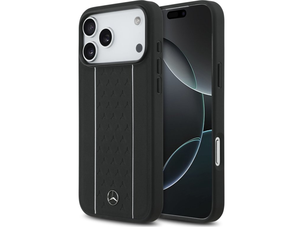 Mercedes Leather Star Pattern and Stripes MagSafe Zadní Kryt pro iPhone 17 Pro Max Black/White